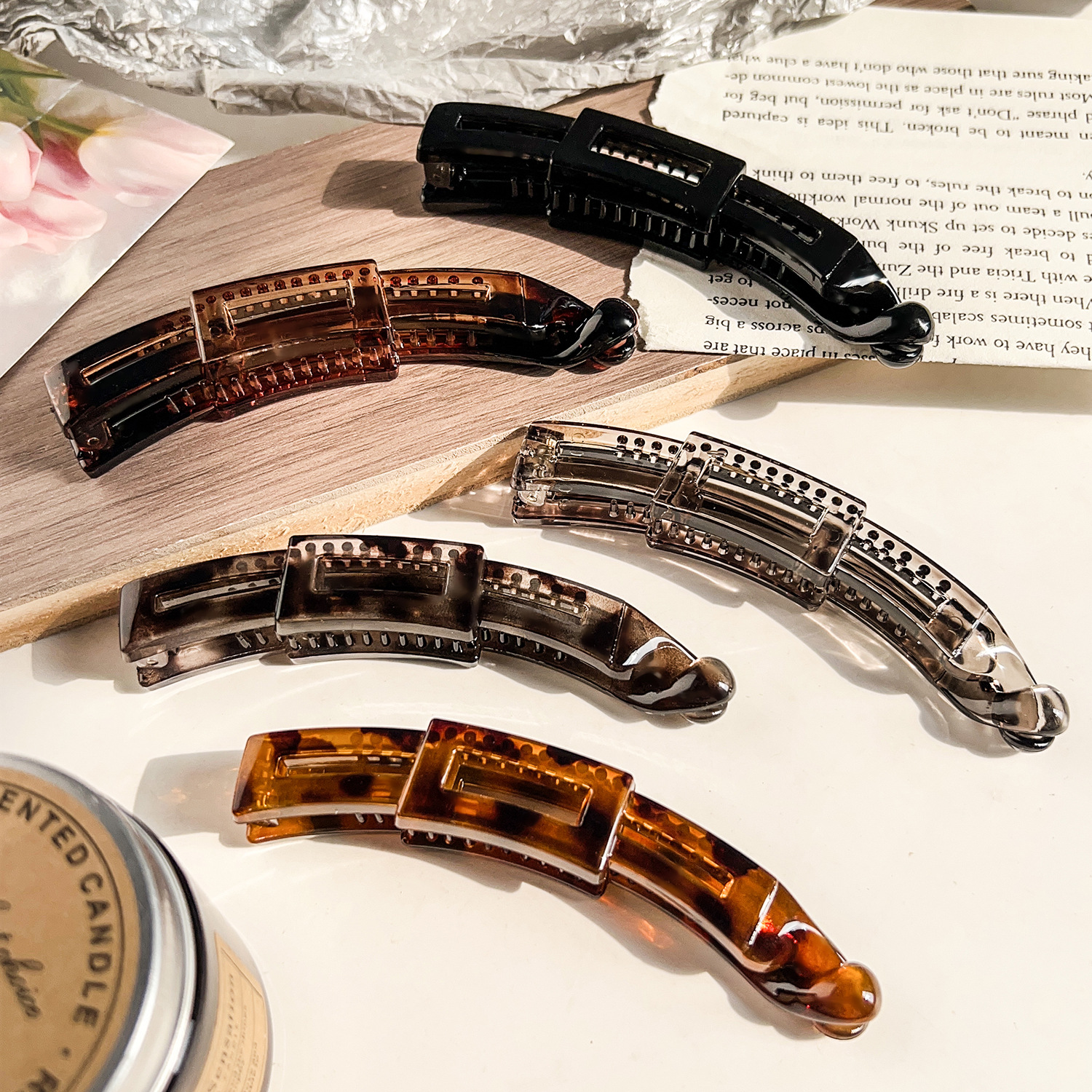 クロスボーダーつや消し一字縦挟みバナナ挟みヘアピン高級感琥珀色後頭部ねじり挟み高頭蓋トップヘアピン