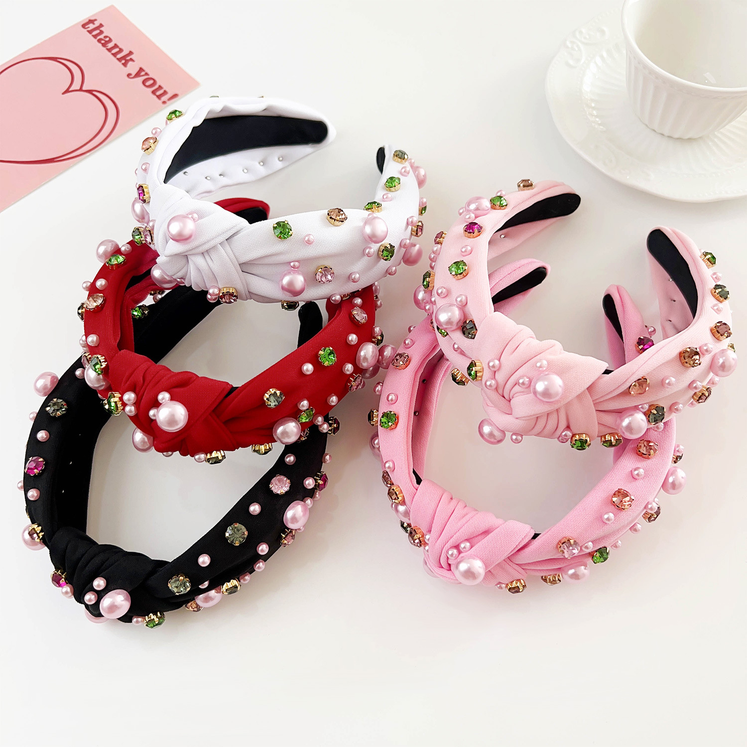 国境を越えて人気のあるバレンタインデーの水ドリル真珠のカチューシャの女性バロックの高級感の気質の軽い贅沢な布芸のカチューシャの髪飾り