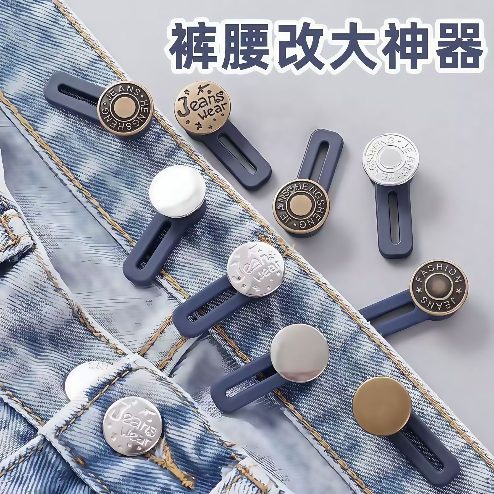 ジーンズのウエストを調節するツール、ウエストを広げるボタン、ズボンが小さくなったら大きめに変えるツール、伸縮性調整ボタン