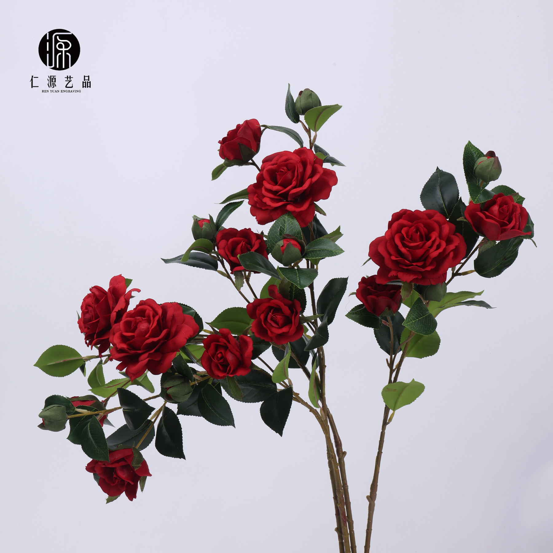 工場直販赤と白の椿バラ造花感触造花リビングルームの装飾ホームフラワーアレンジメントと材料