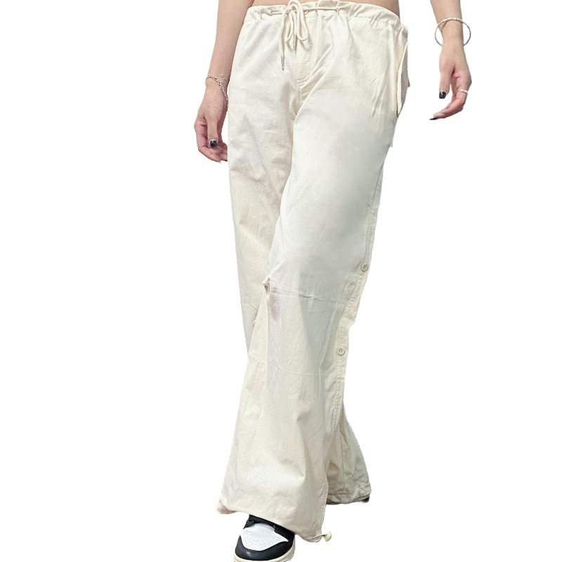 アメリカの国境を越えたレトロな街頭のゆるい広脚工装ズボンの女性の足の調節ボタンのレジャーアウトドアスポーツの布帛