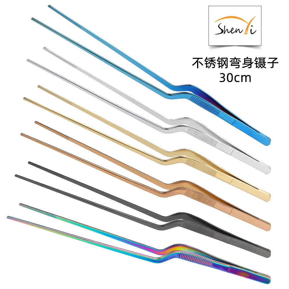 ステンレス製ピンセット30cmチタンメッキ厚手防ヨウ素伏ドレッシングピンセット園芸ピンセット造景クリップ日用工具