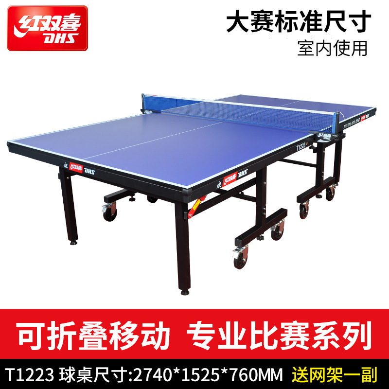 赤双喜純正品t1223折り畳み可能な移動高級シングル折り畳みボールテーブル卸売りネットフレーム + ラケット2本