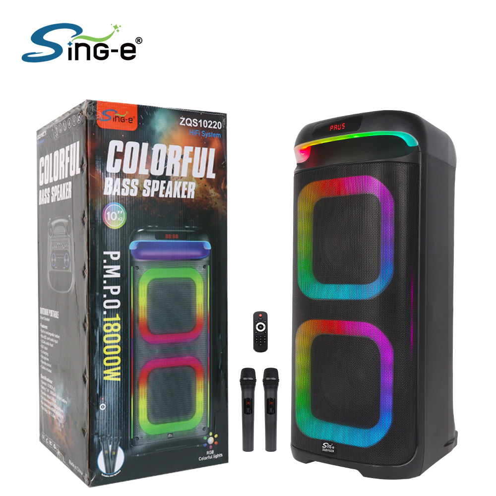 Sing-e ZQS10213 デュアル 10inch Bluetooth スピーカーハイパワー RGB カラーライトスクエアダンス HiFi 音質ディスコ