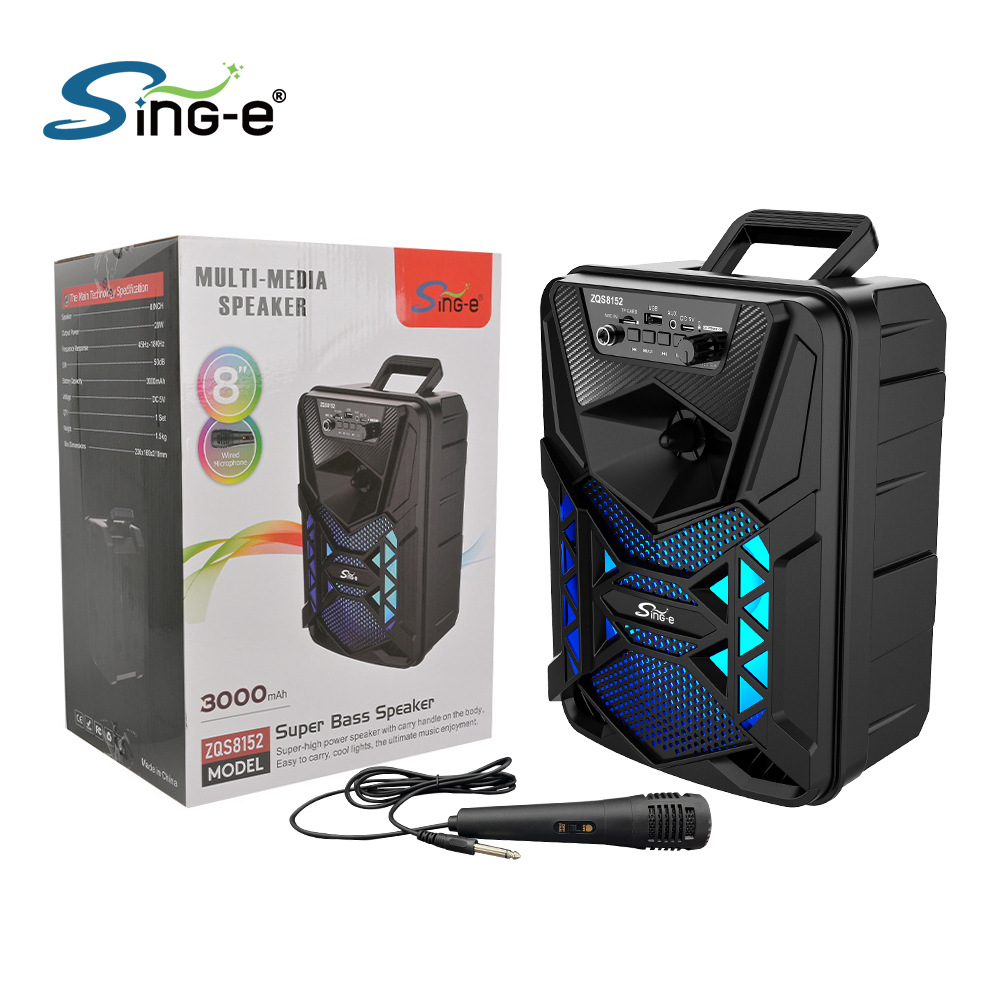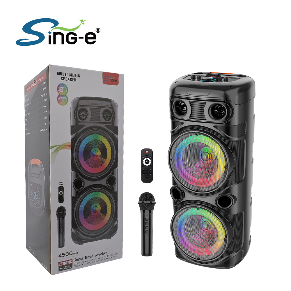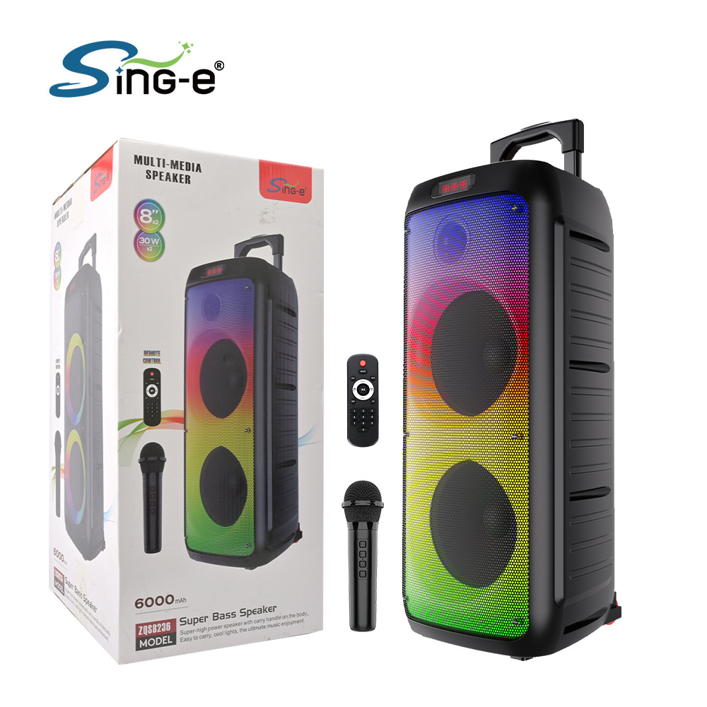 Sing-e dec s8230工場ダブル8インチスピーカー30w屋外bluetoothオーディオマイク付き七彩LED