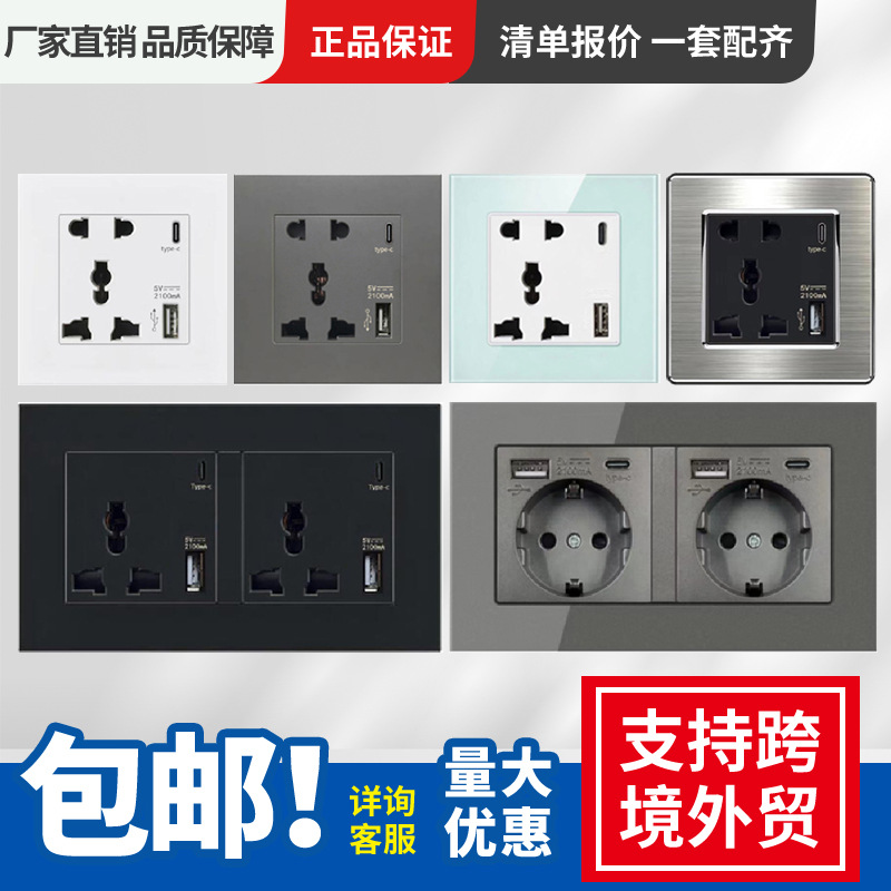 13aイギリス規格usbソケット146型イギリスタイプtype-c双連多三穴英標十穴スイッチソケットパネル