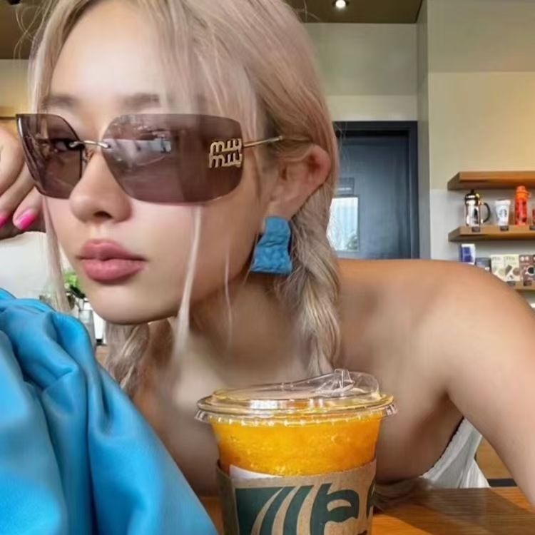新商品のフレームなしの表面の軽い豪華なサングラスの女性y 2k千年のギャルの風張元英の同じタイプの高級感のサングラスの男性