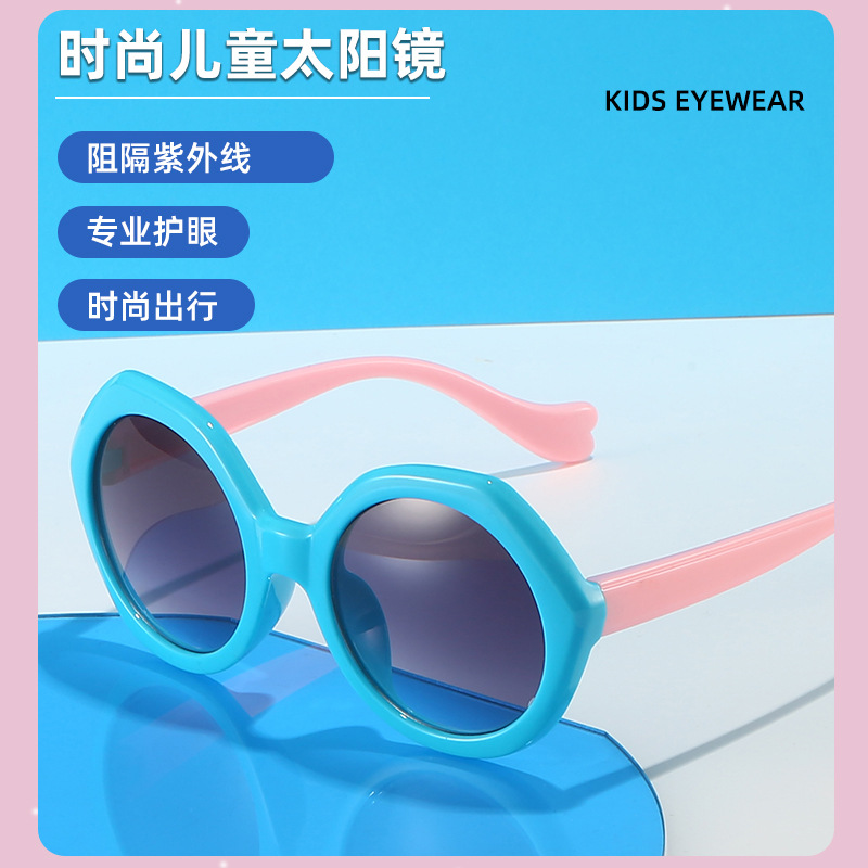 新しい多角形子供サングラス女の子ファッションプリントかわいいサングラス夏旅行赤ちゃん日よけ眼鏡
