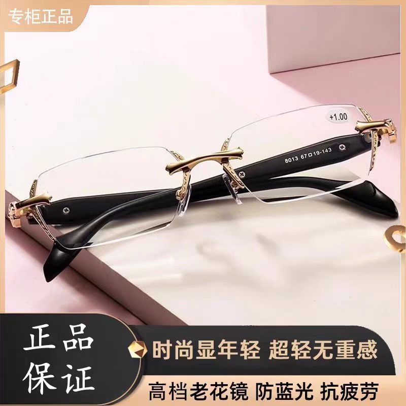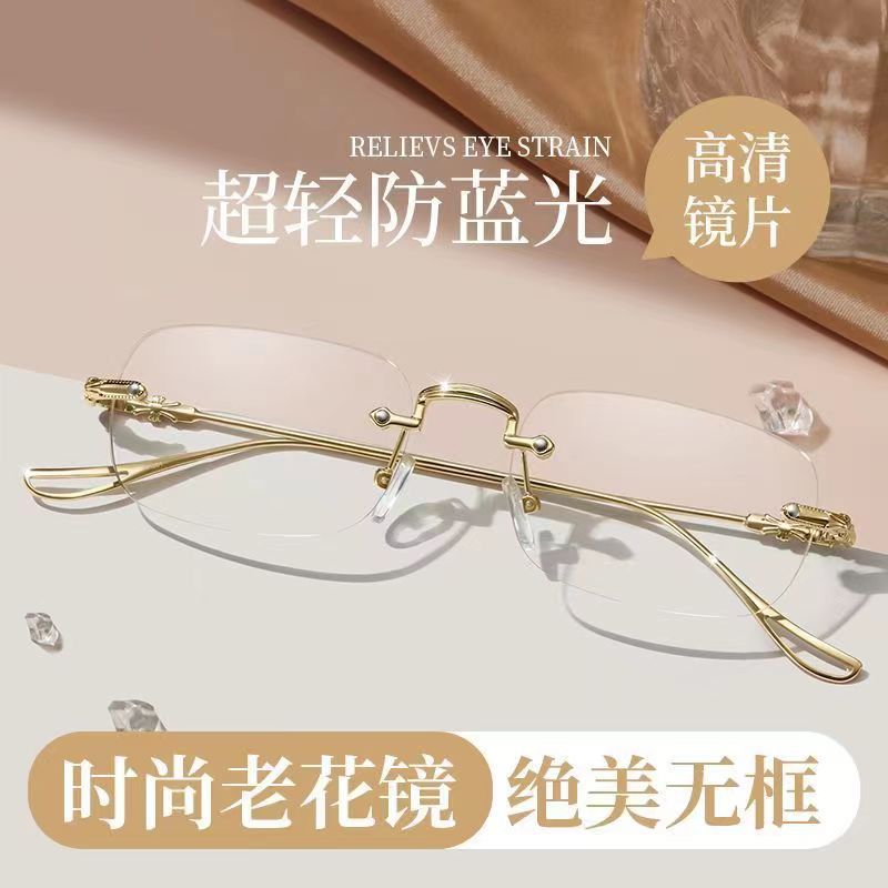 高級無枠老眼鏡男超軽量ファッションブルーレイ防止放射線高精細中高年老光老視眼鏡女