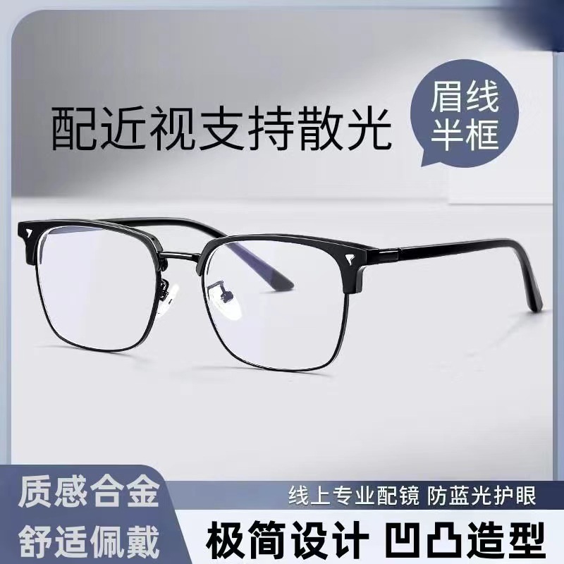 新しいファッションのレトロな半枠の青い光のメガネの潮の斯文の理工の男性のファッションの格好いい完成品の近視眼の鏡の枠