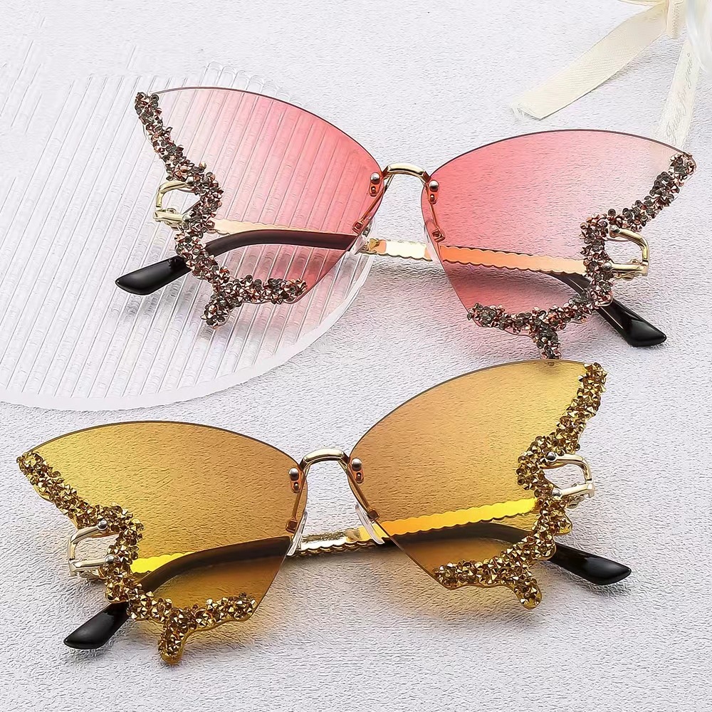 新型のダイヤモンド蝶の縁なしサングラスの個性は誇張して二次元のネットの赤い街は紫外線を防ぎます。