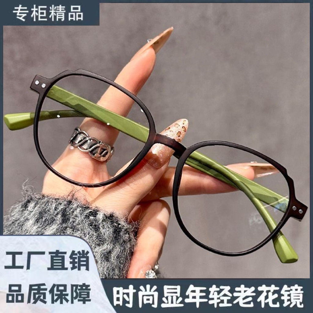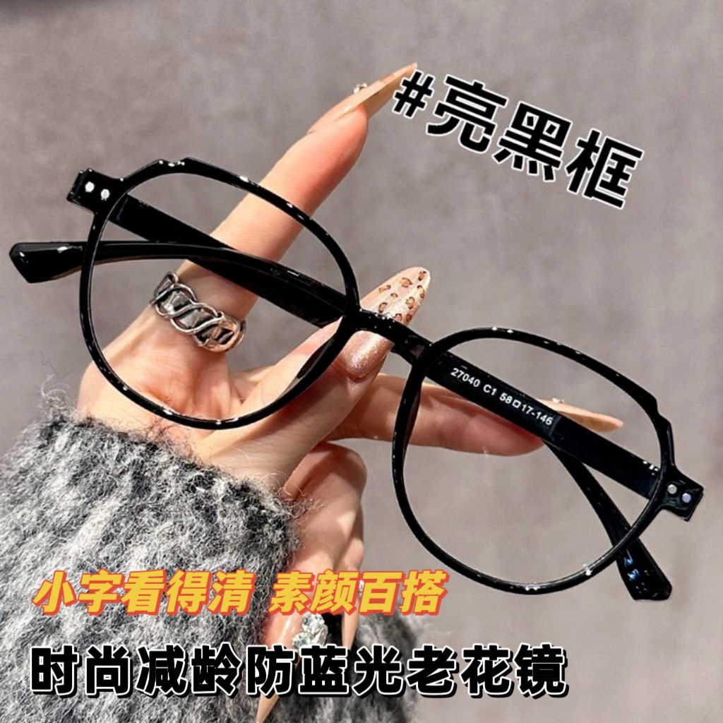 韓国版超軽量TR90ブルーレイ防止老眼鏡ネット赤素顔百合平光鏡ファッション減齢老眼鏡女