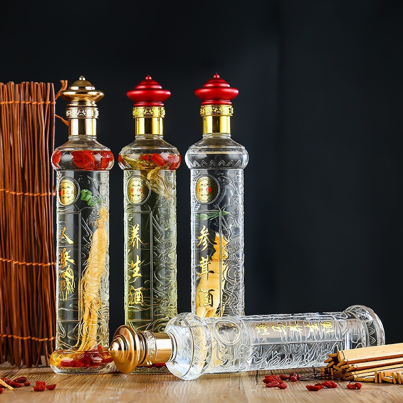 500 ミリリットル高麗人参酒ガラスボトル透明な空の薬用酒包装小口ガラス密封瓶卸売