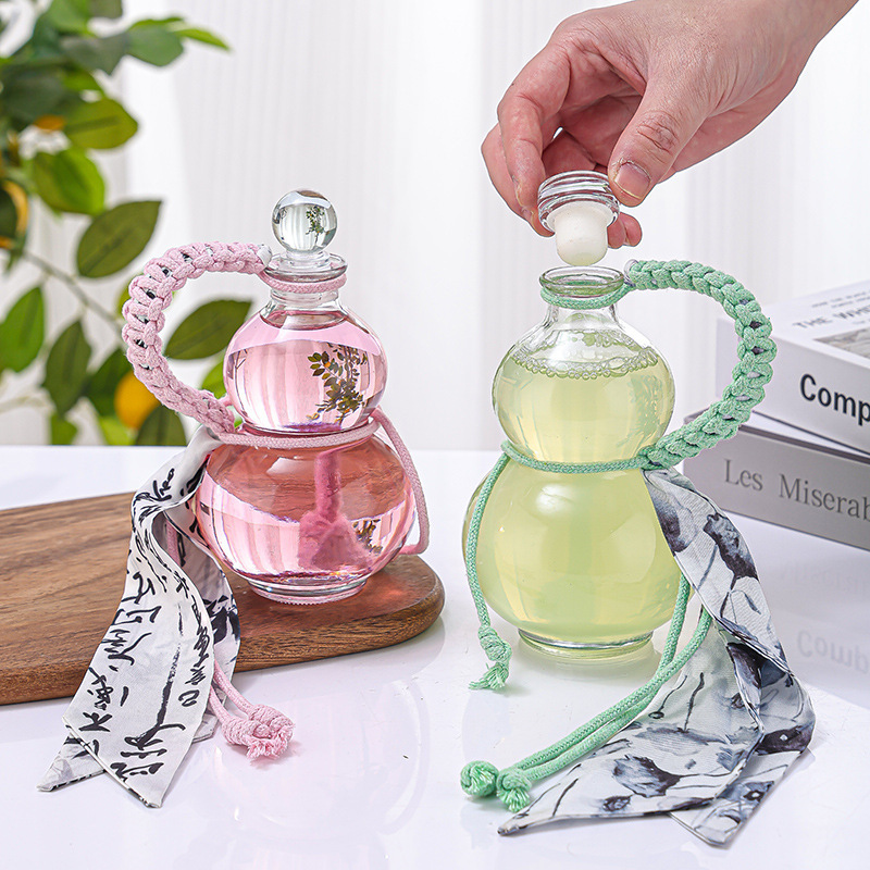 厚みのあるひょうたんワインと果実酒ボトル透明ガラスボトル酒ボトル空ボトル飲料ボトル果実酒ボトル 375 ミリリットル