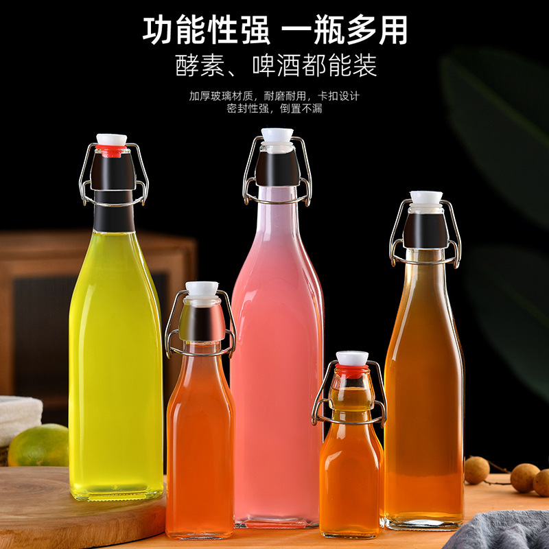 工場直販透明ガラス果実酒ボトル自家製ワインボトル米酒ボトル密封飲料ミルクティーボトル