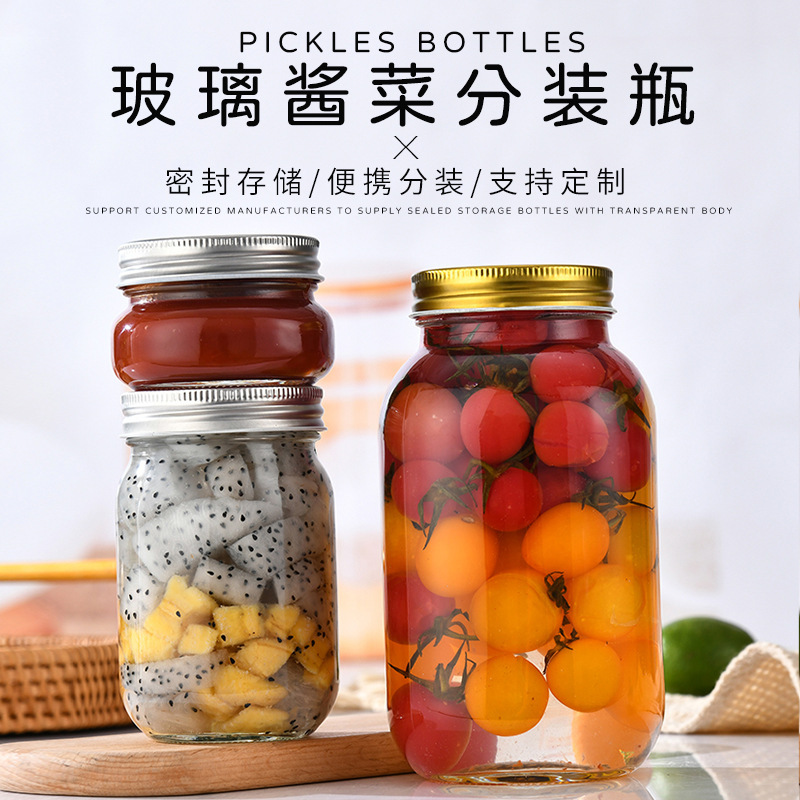 工場直販密封瓶ハニーボトルメイソンジャーピクルスボトル透明ガラスボトル家庭用保存瓶増粘ガラス