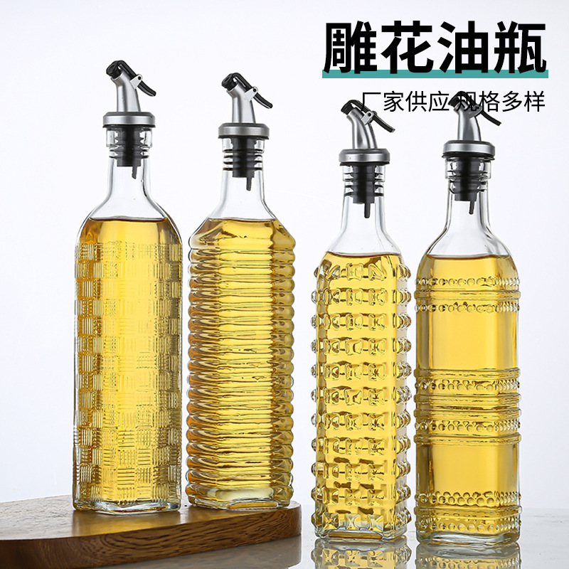 透明彫刻オイルボトル食用油詰め替えボトル家庭用醤油酢密封ごま油ボトルキッチン調味料ボトル