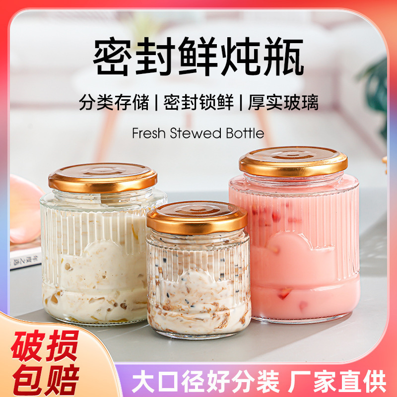 高温耐性蜂蜜ガラス瓶、食品グレードの密封瓶、新鮮な煮込み瓶、ツバメの巣詰め替え瓶、蒸し可能な魚のミルク瓶