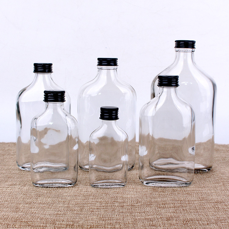 ポータブルフラット空のワインボトル黒プラスチックキャップメーカー卸売 100 ミリリットル/500 ミリリットルガラス斜め肩ワインボトルフラットワインボトル