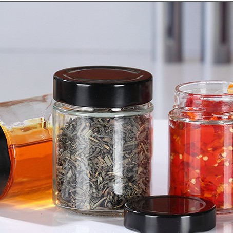 透明な正方形のガラスボトル 100 ミリリットル-500 ミリリットル蜂蜜ボトルピクルスボトル密封瓶食品詰め替えボトルロゴ可能