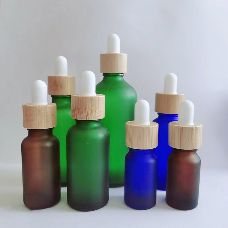 青色遮光エッセンシャルオイルボトル竹蓋メーカー卸売エッセンストライアルボトルサンプルボトルラバーチップドロッパーボトル