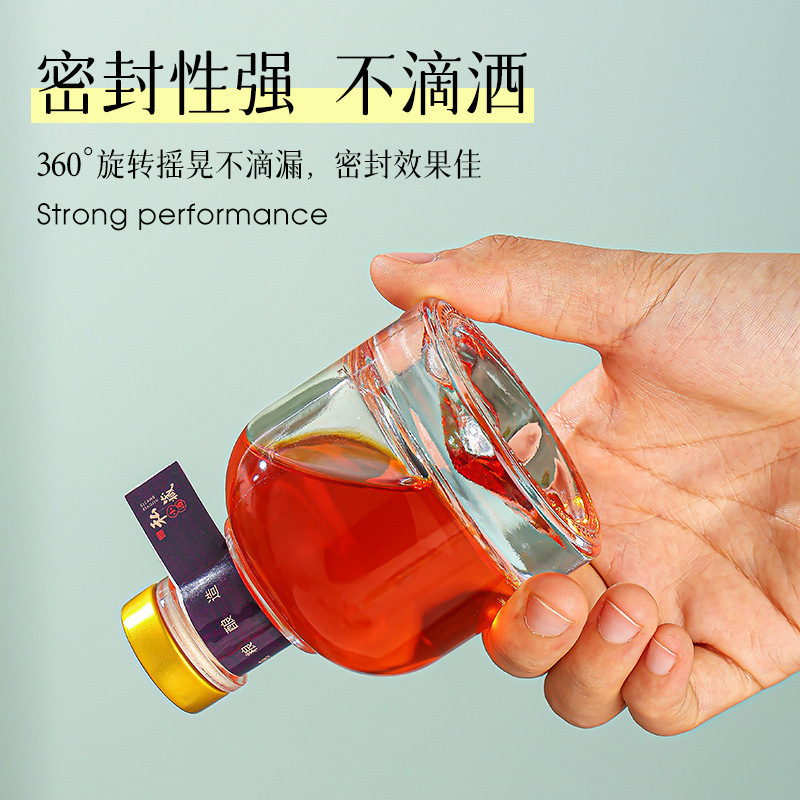 密封された高品質の透明なガラスの火山底の小さなワインボトル、果実ワインボトル、球状飲料ジュースボトル
