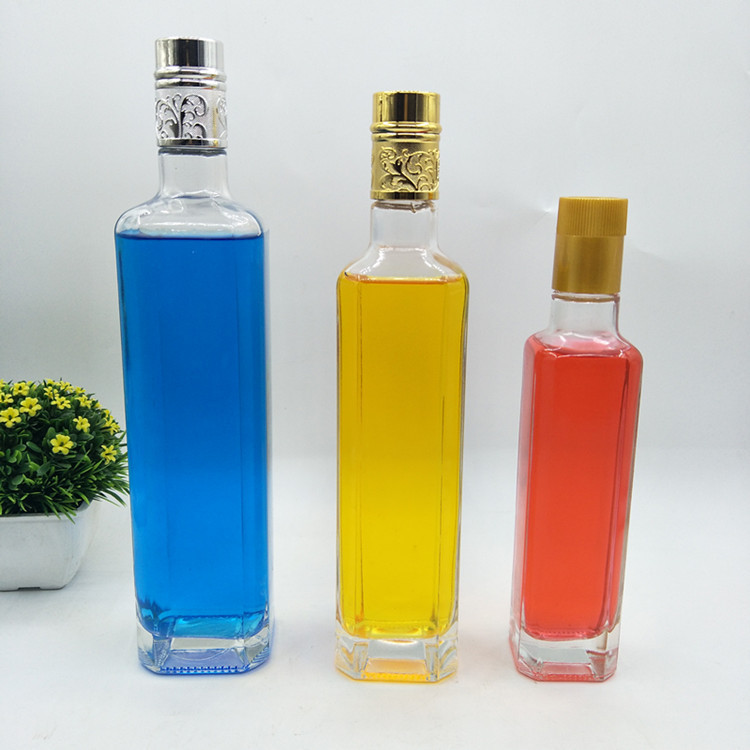 lクリスタルホワイト素材透明増粘椿油ガラスボトル500m半斤角密封ボトルロゴ在庫あり