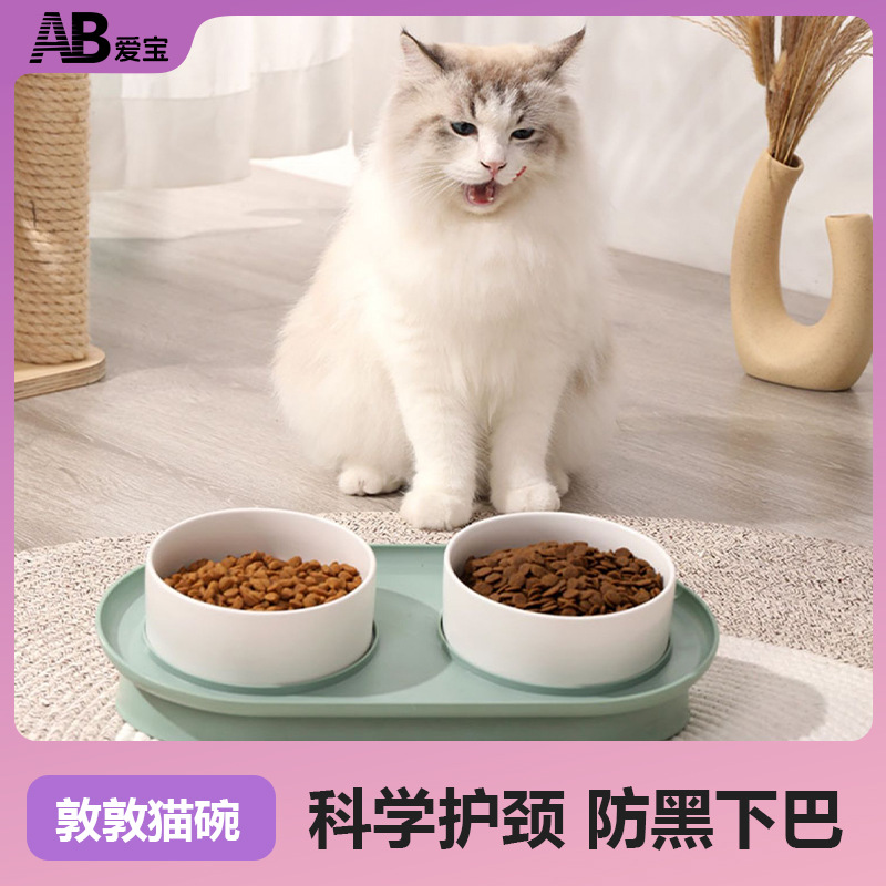Talkcat猫の碗の陶磁器の双碗の猫の食糧の碗の犬の碗はひっくり返して水の碗を飲むことを防ぎます。