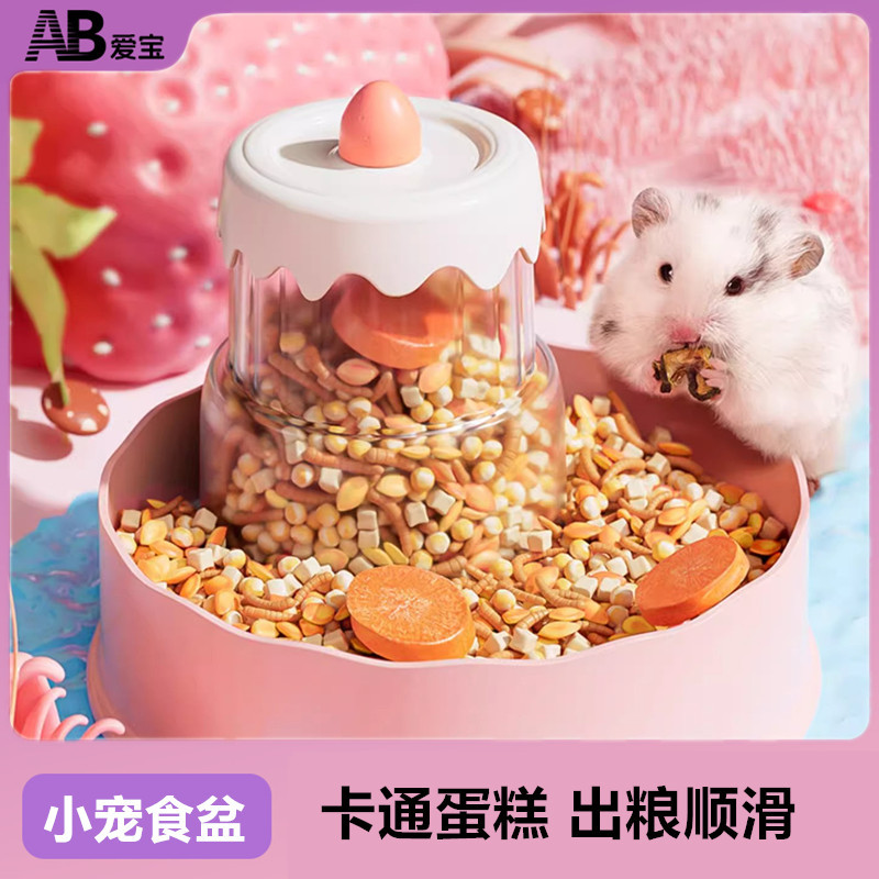 ハムスターの鉢のかわいいケーキは食糧を蓄えます。