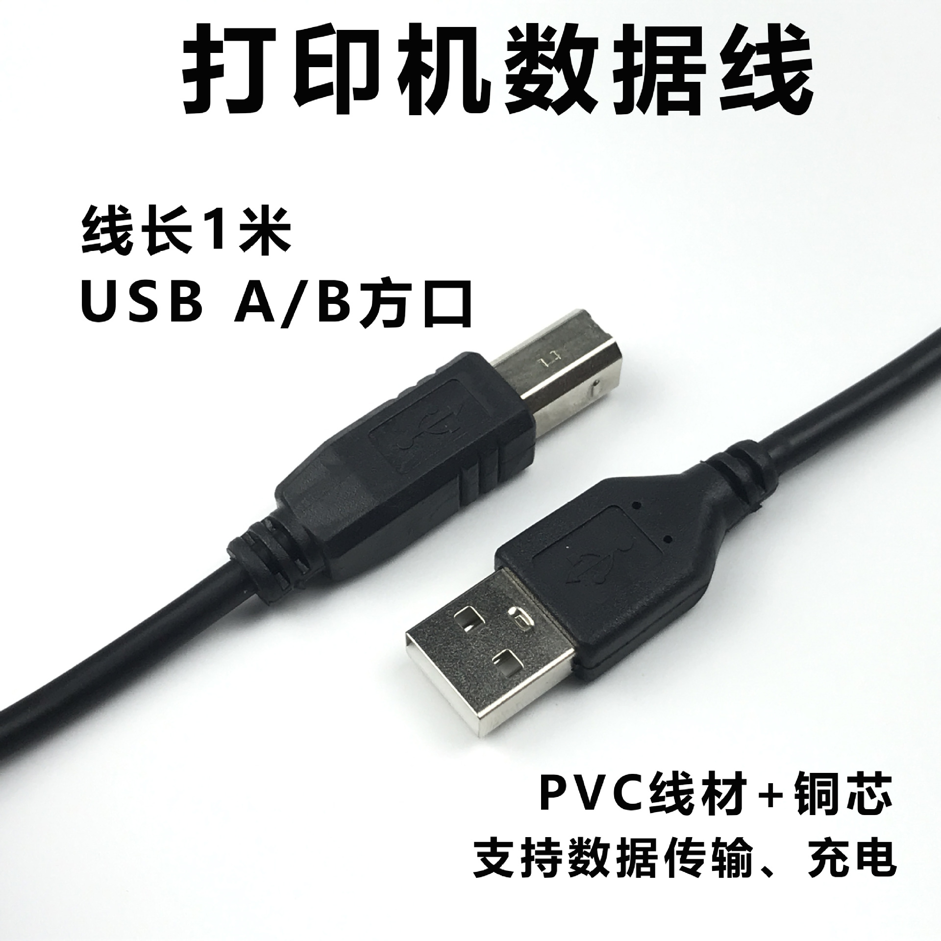 Usbプリント線1メートルプリンタ充電線純銅高速角口プリント線2.0データ線磁気リング付き