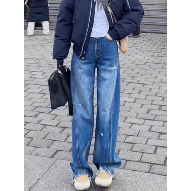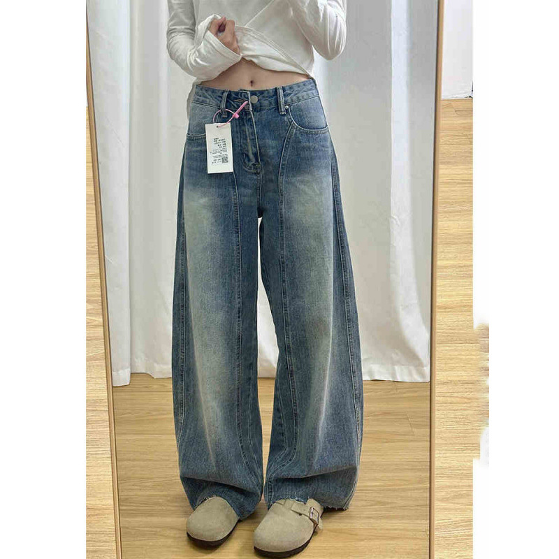 アメリカンレトロワイドレッグジーンズレディース春新作ハイウエストルーズスリムストレートパンツドレープフロアレングスパンツ
