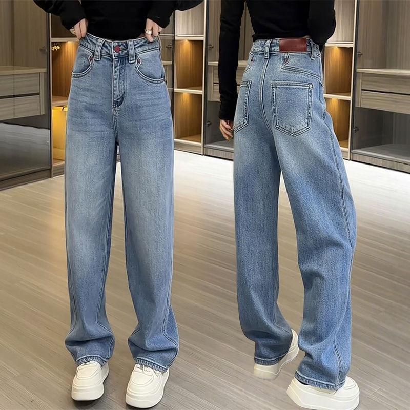 2025 新しいジーンズ女性の春の人気のパンツストレートカジュアルパンツスリムファッションブルールーズストレートパンツ