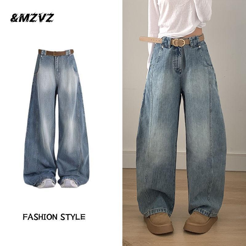アメリカンレトロハイウエスト鎌ジーンズ女性のための 2025 春と秋の新大きいサイズ痩身デザインルーズワイドレッグパンツトレンディ