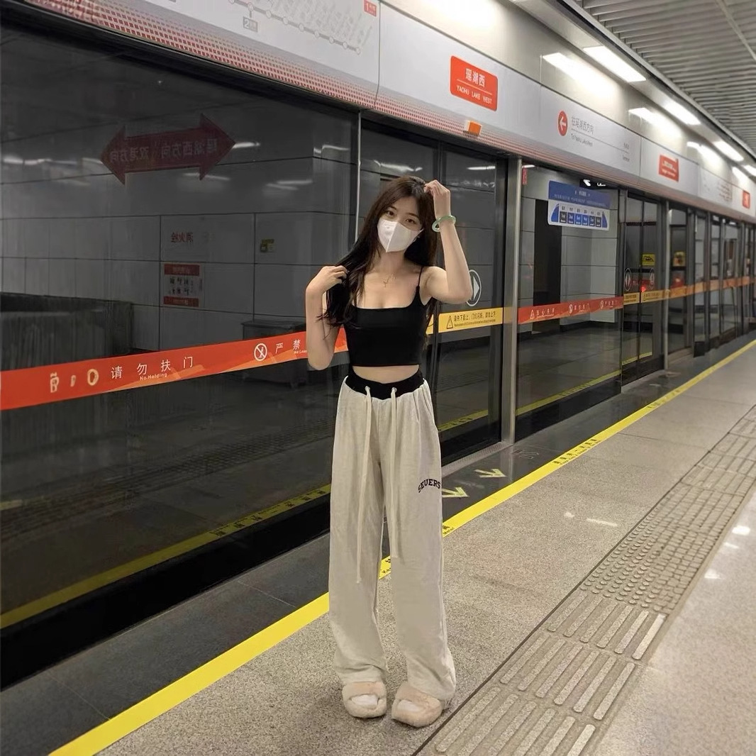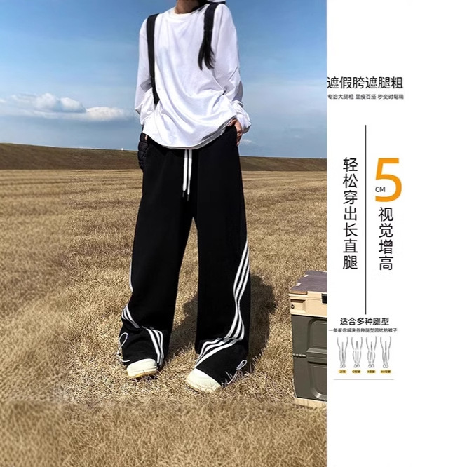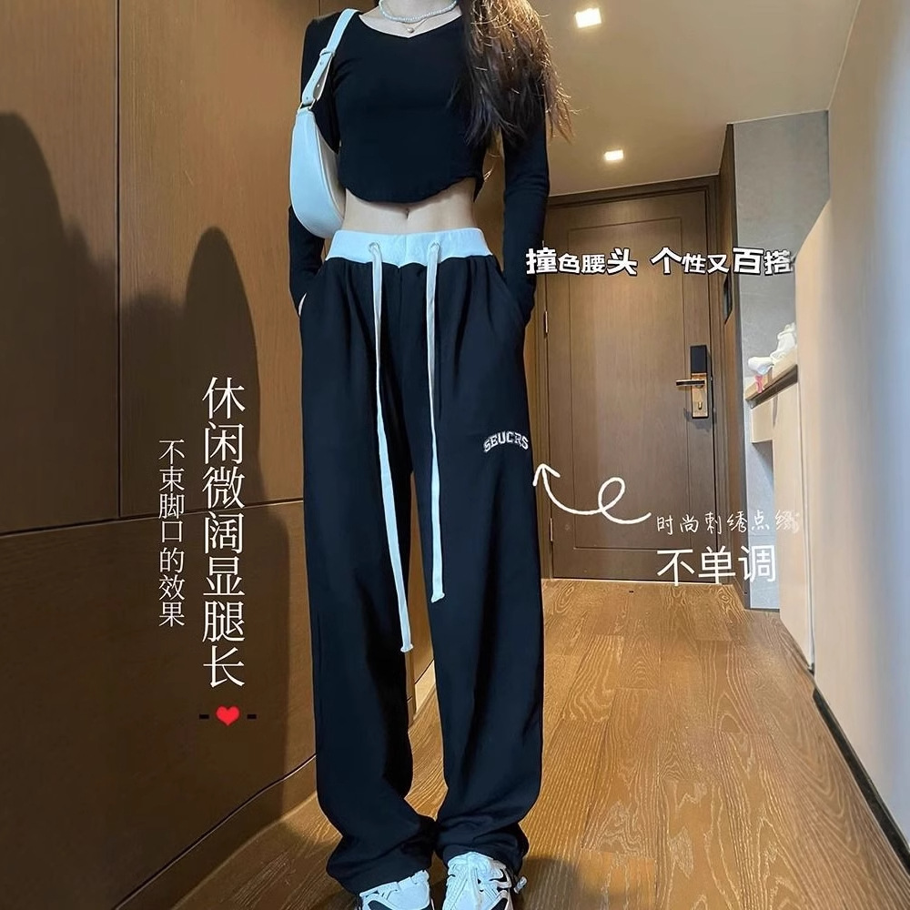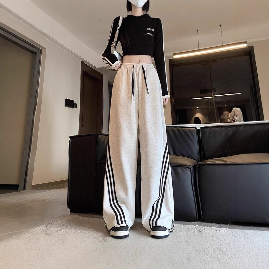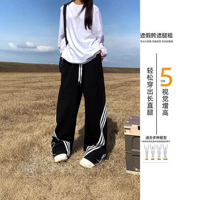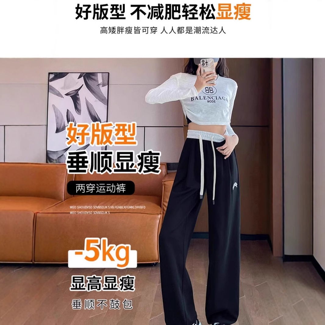 スポーツパンツの女性2024の新しいカジュアルなストレートのワイドパンツの腰がゆったりしていて、カジュアルで痩せています。