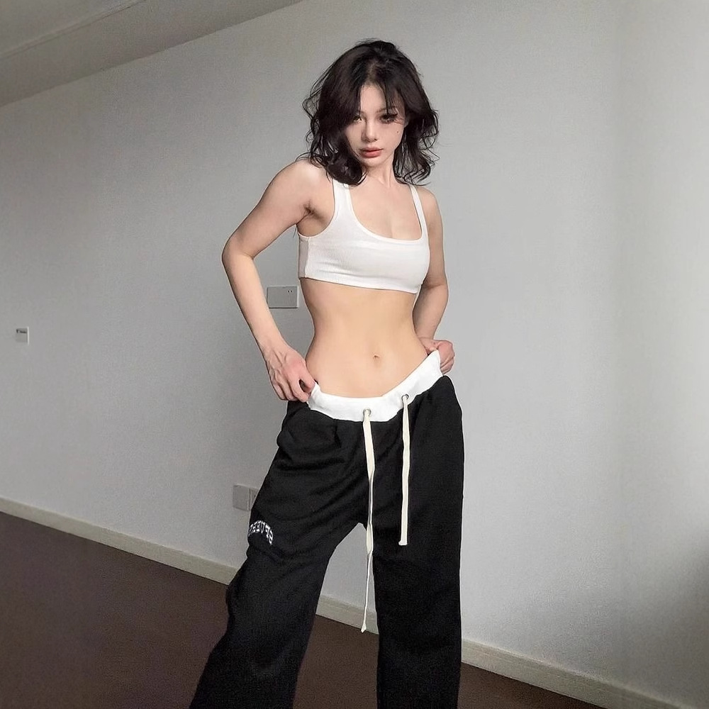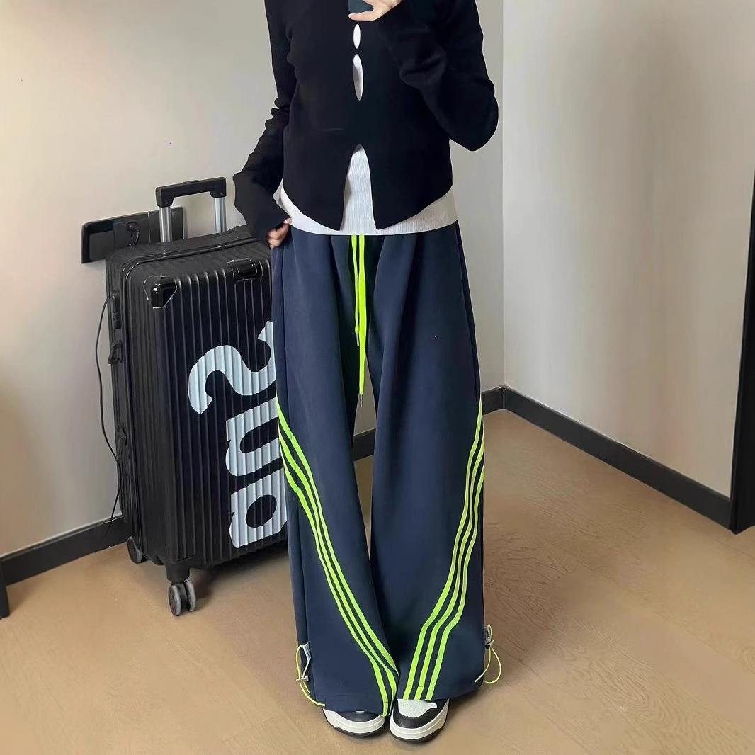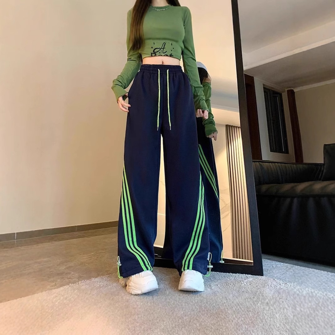 2024秋の運動衛ズボンの女性ins潮斜めのストライプは色の高い腰にぶつかってカジュアルでゆったりしています。