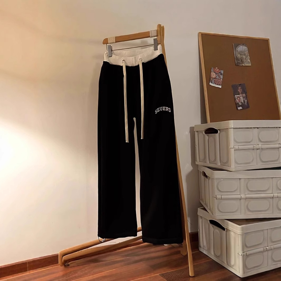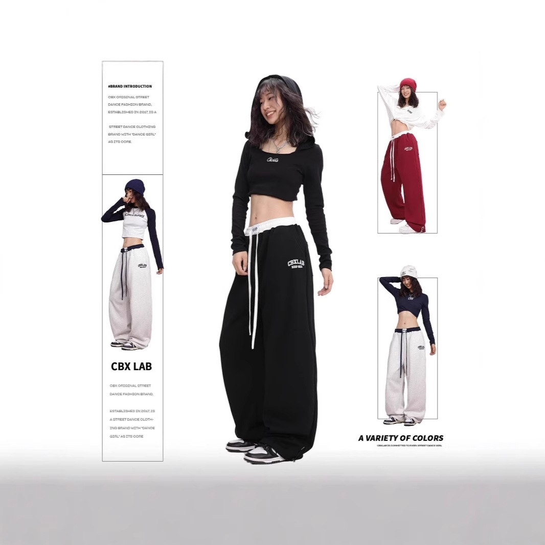 2024秋冬モデルの衝突色は男女のゆったりしたアメリカ式ヒップホップストリートダンスのカジュアルなスポーツズボンのワイドレギンスのストレートパンツをつなぎ合わせます。