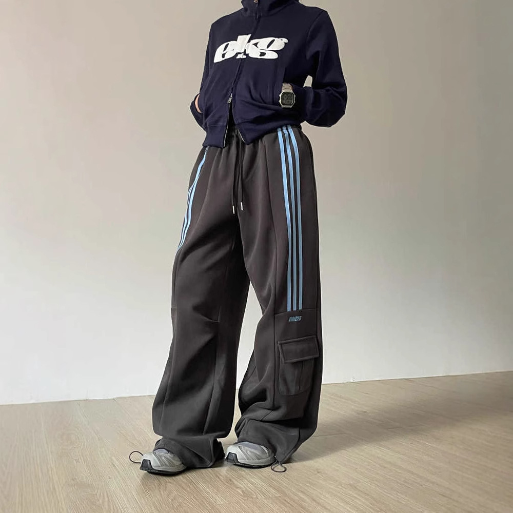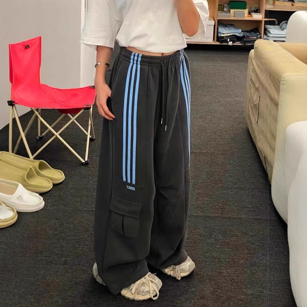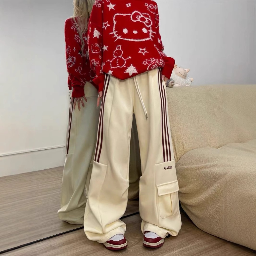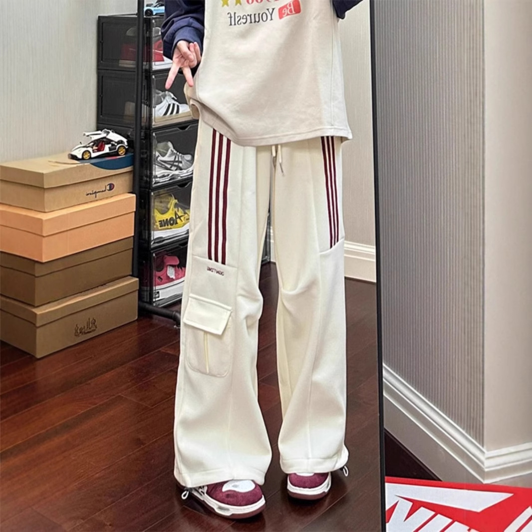 ペンダント感カジュアルスポーツアメリカンレトロストライプスポーツズボン