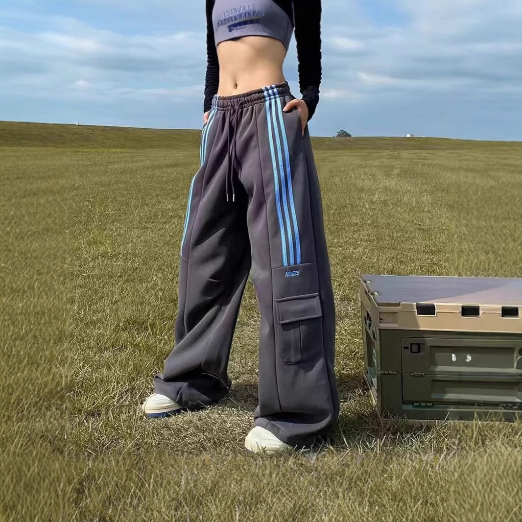 工装ズボン女性秋冬アメリカレトロゆるいファッションins高街運動ストレートカジュアル広脚ズボン