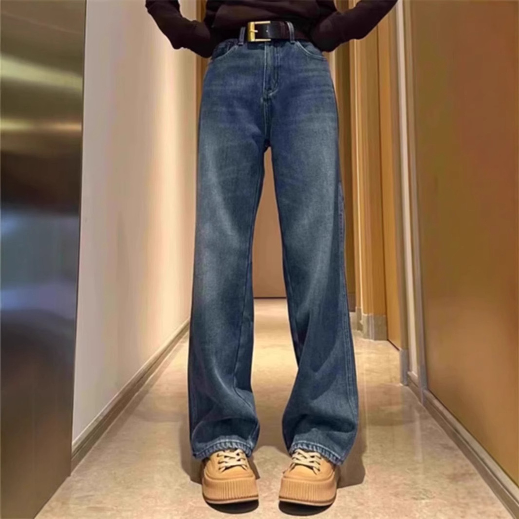 大きいサイズのベルベットは、高腰ストレートジーンズの女性2023の新しい秋冬太ったmmがゆるくて痩せているズボンを厚くしている