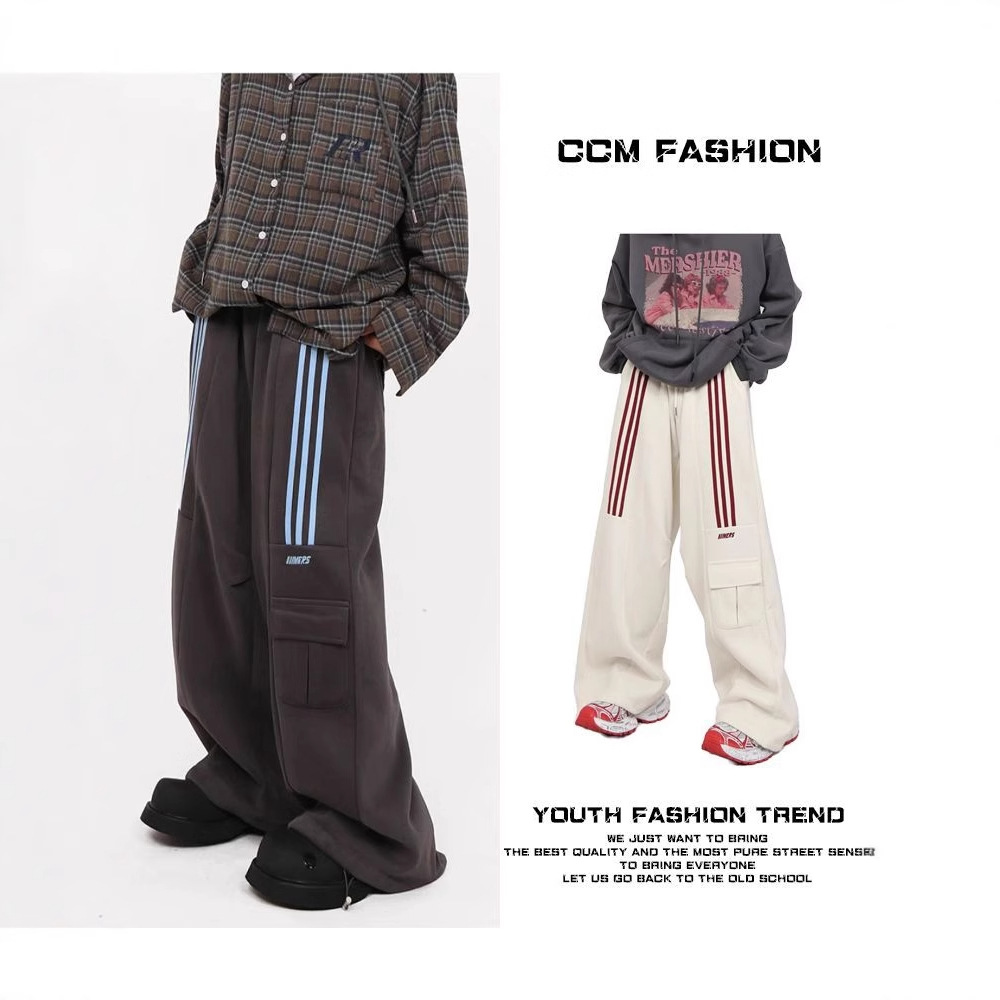 アメリカンvibe古着三竿カジュアルパンツスポーツパンツ男女街頭ヒップホップ個性ゆるいワイド脚ストレートズボン