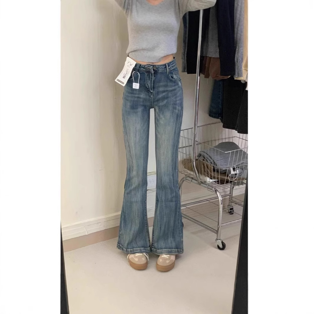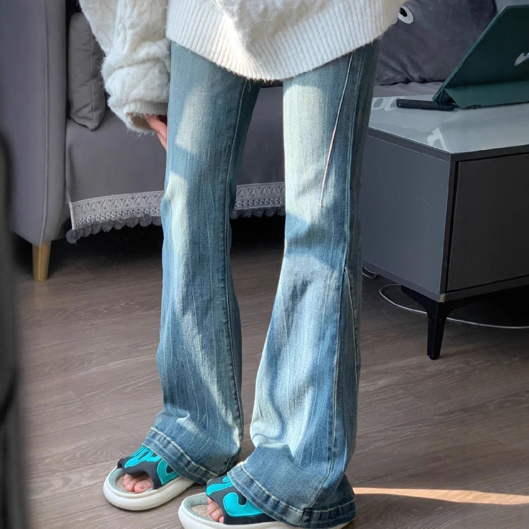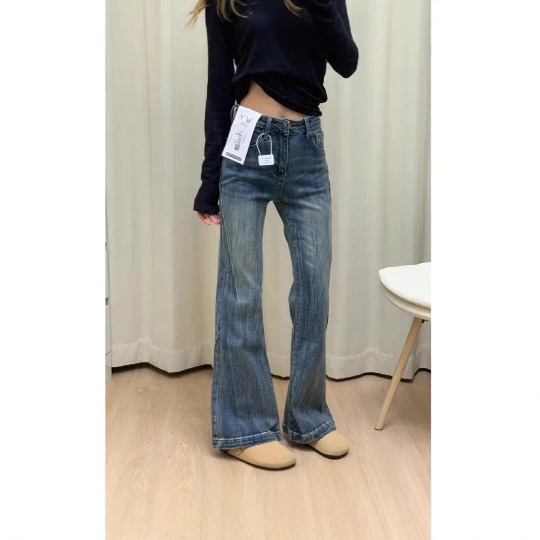 レトロな背の高い長さの微ラッパジーパンの女性秋冬の新型のデザイン感があります。