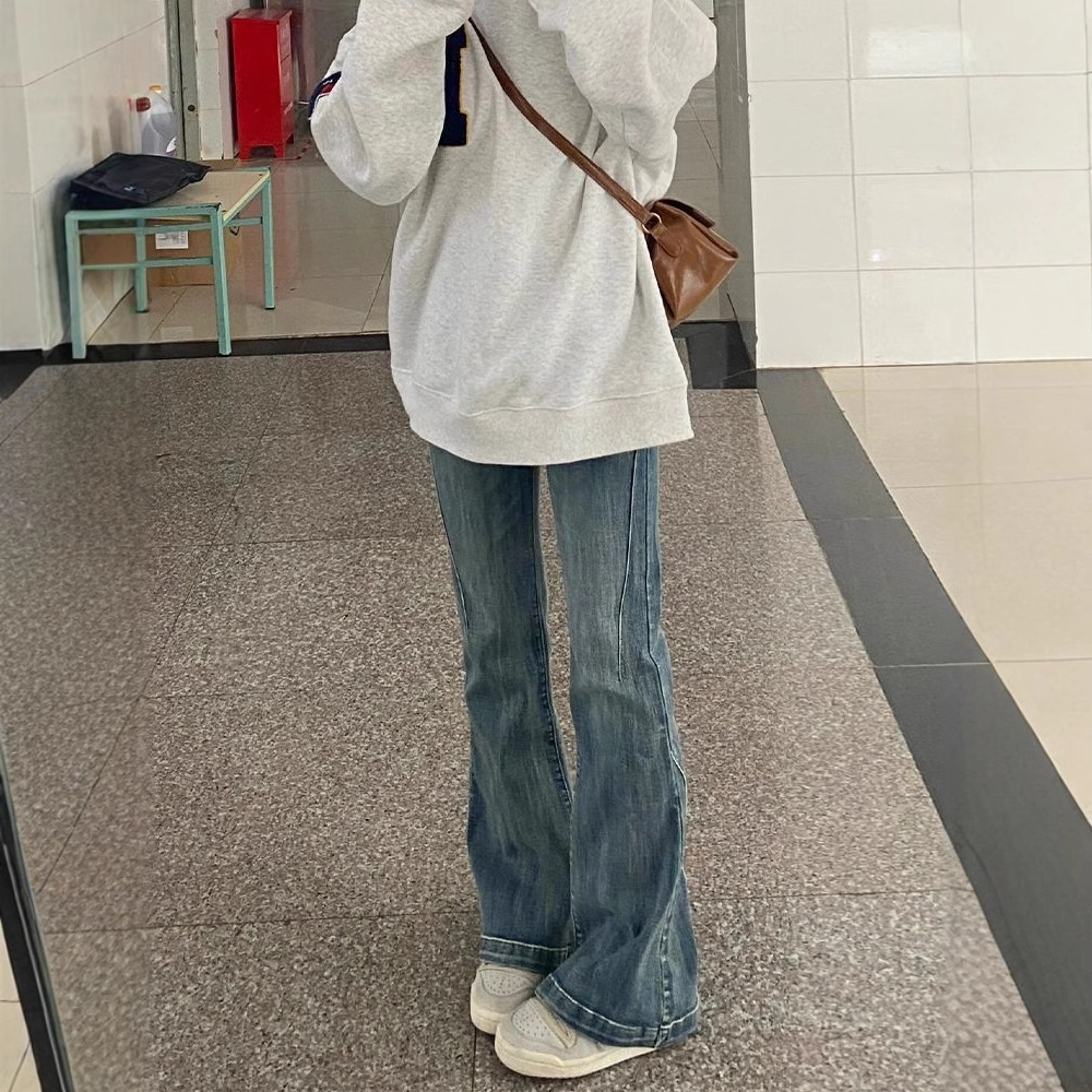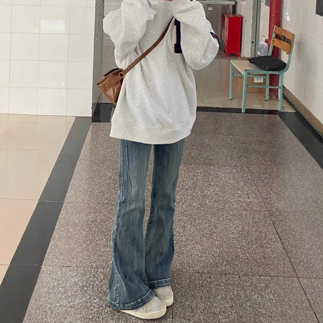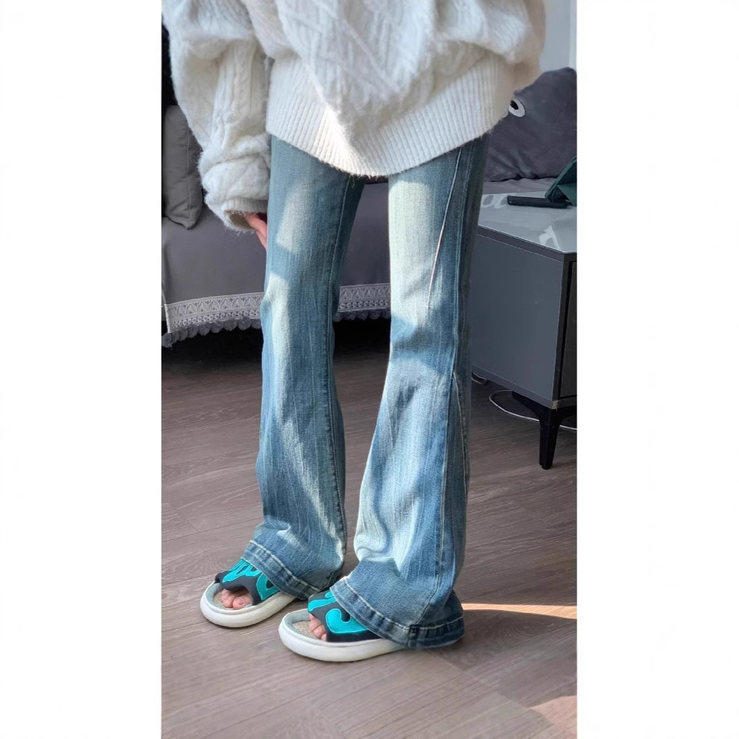 レトロな背の高い長さの微ラッパジーパンの女性秋冬の新型のデザイン感があります。