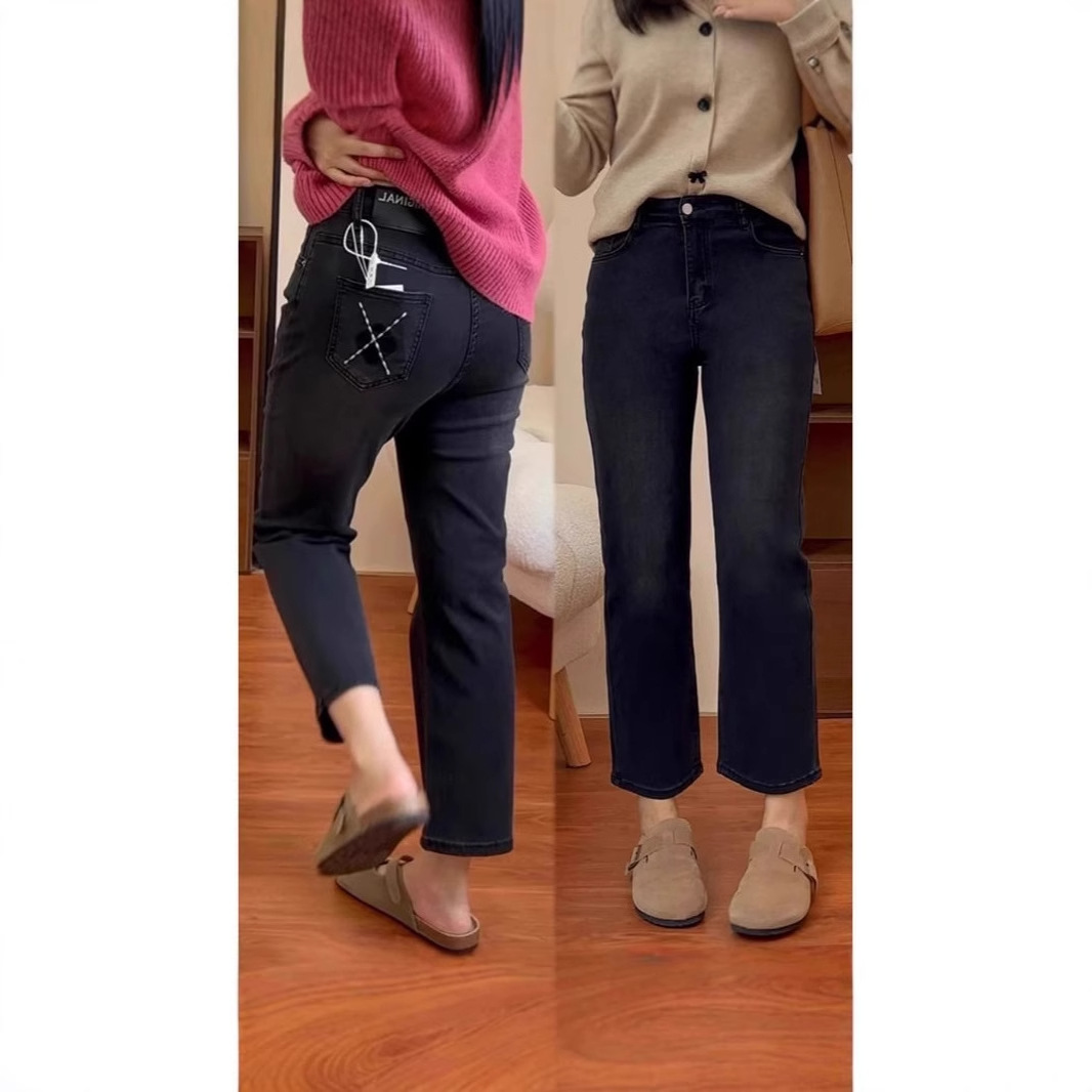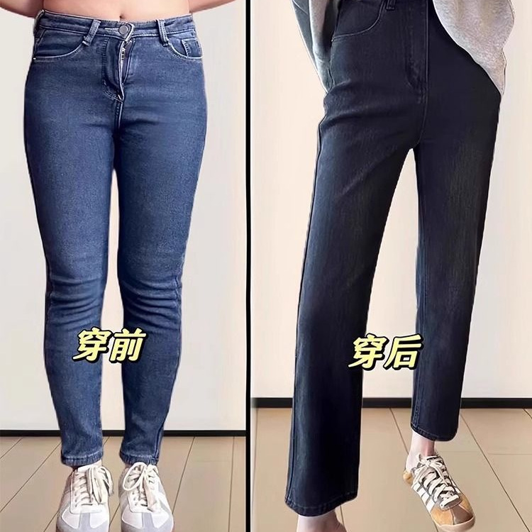 暖かくて膨れません秋冬の厚い絨毯の狭い版のまっすぐな筒のズボンの女性の腰の高くてやせている万能なタバコの管のジーパン
