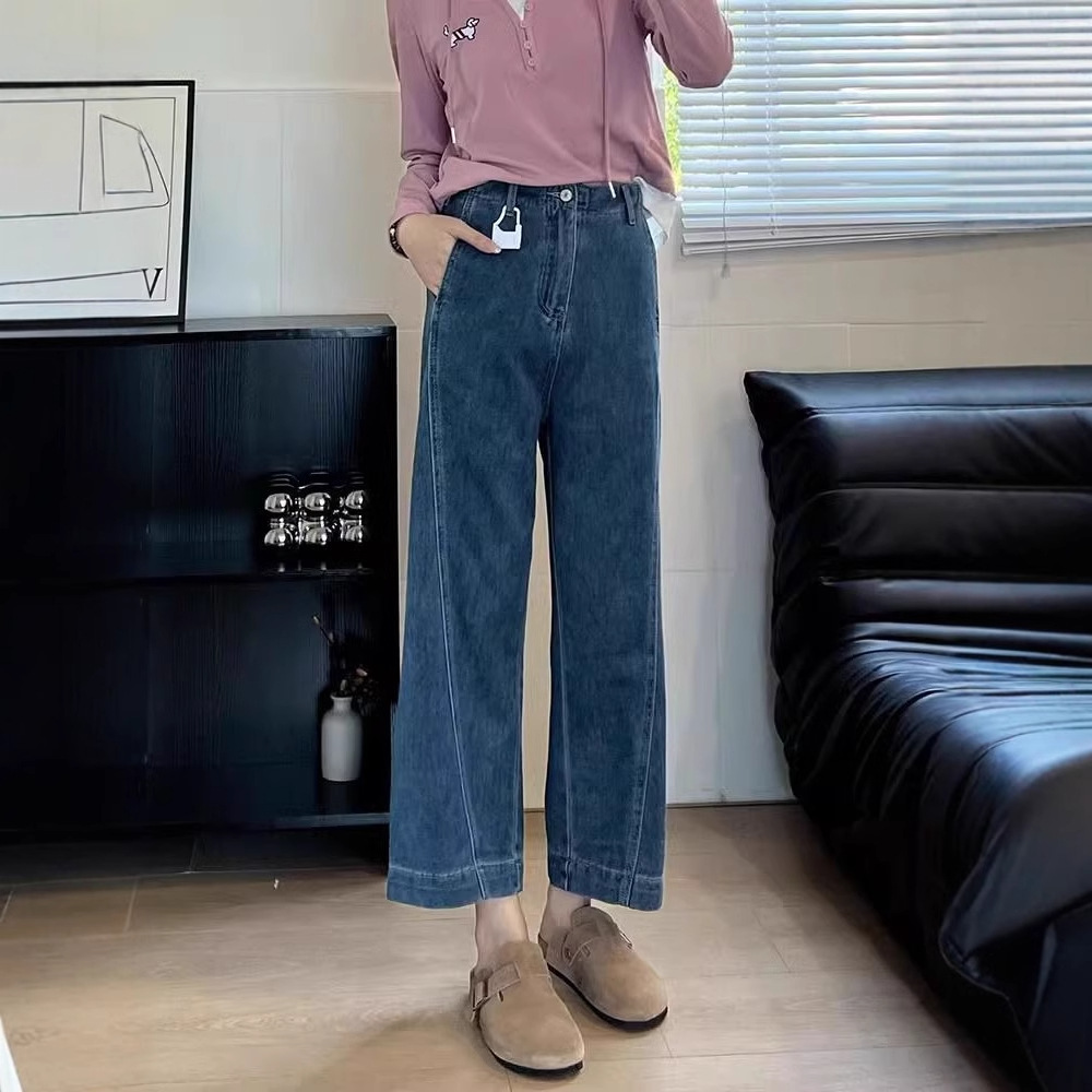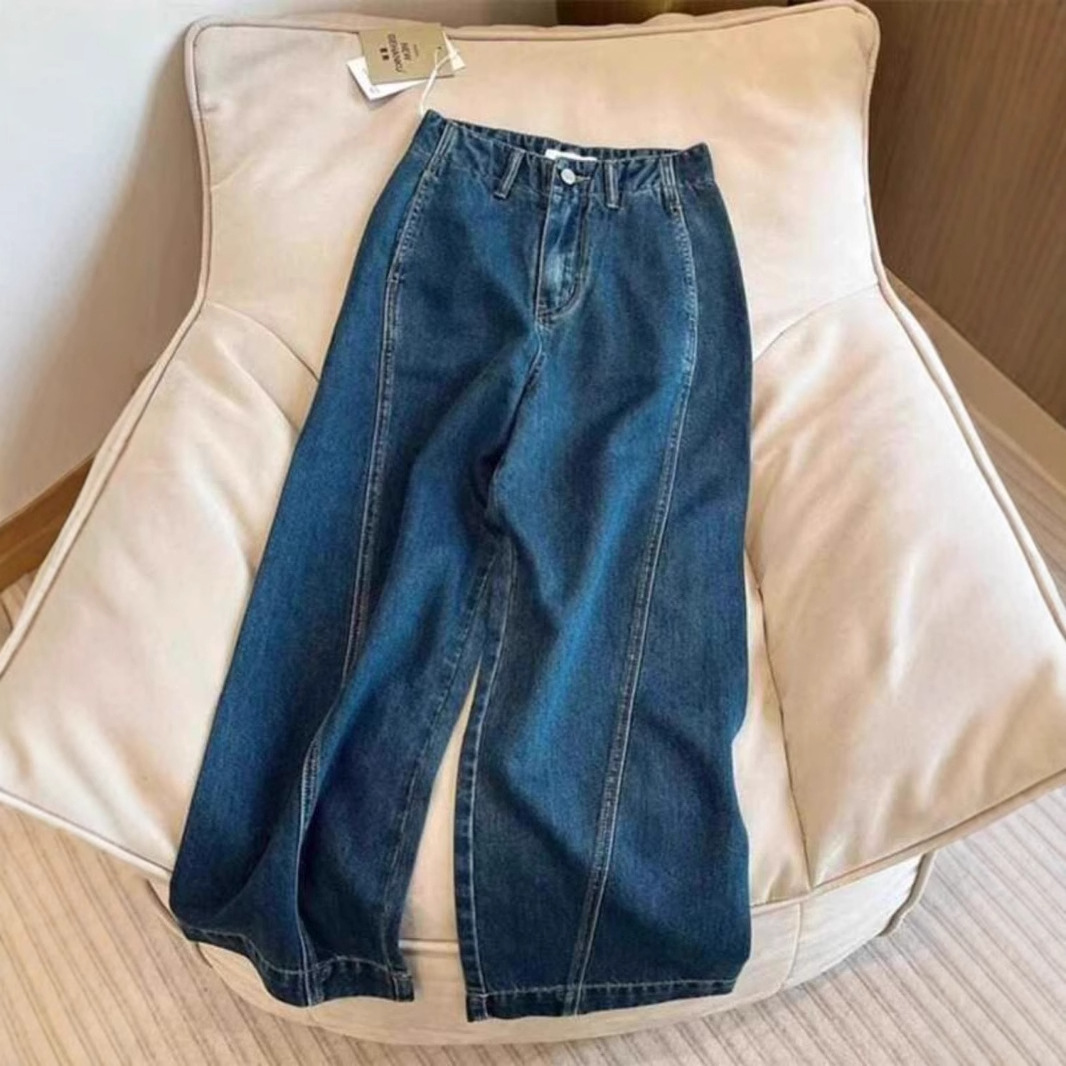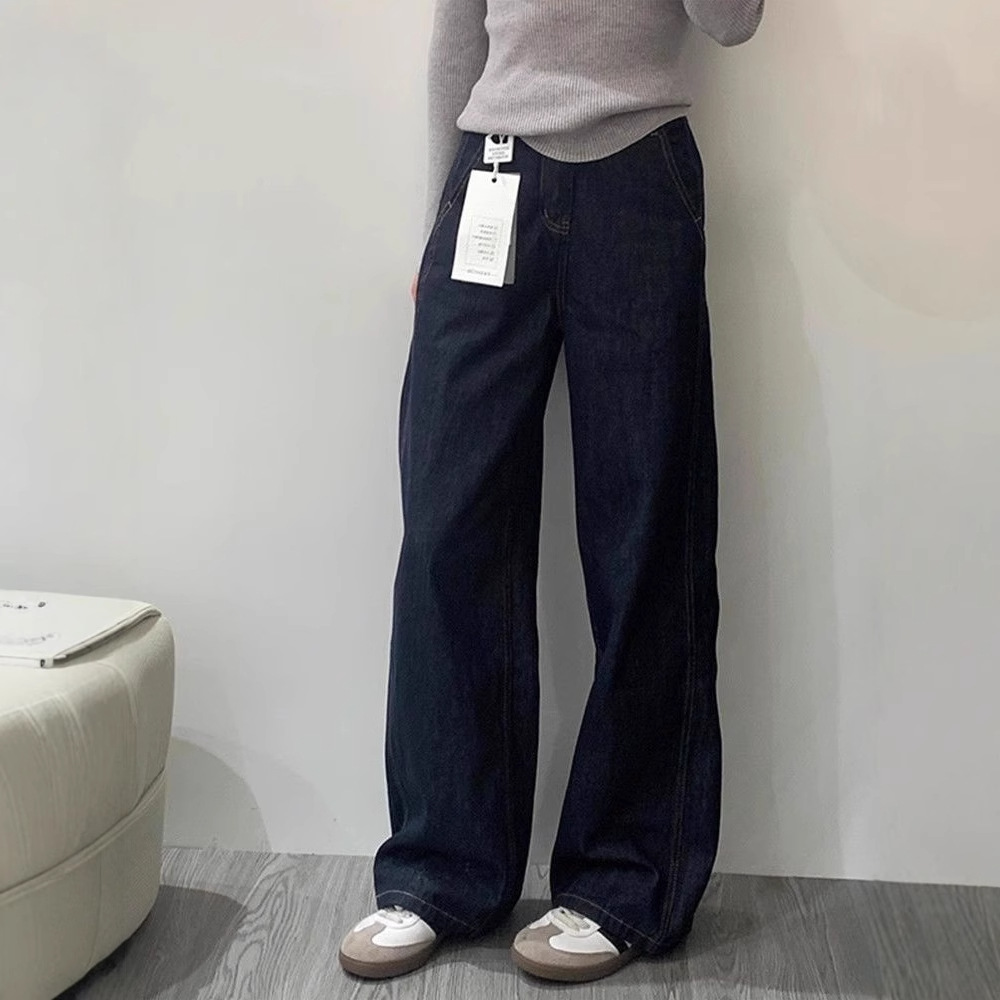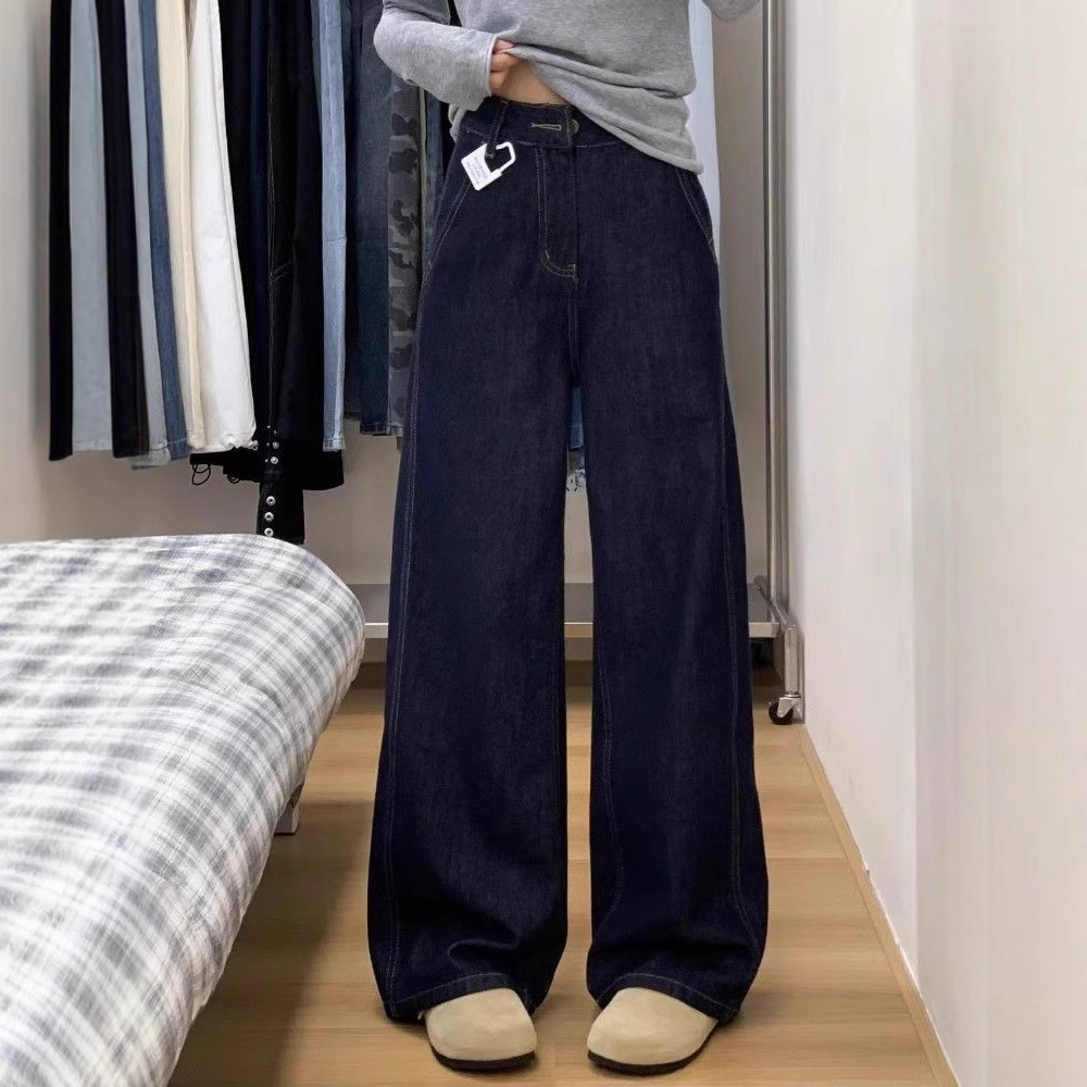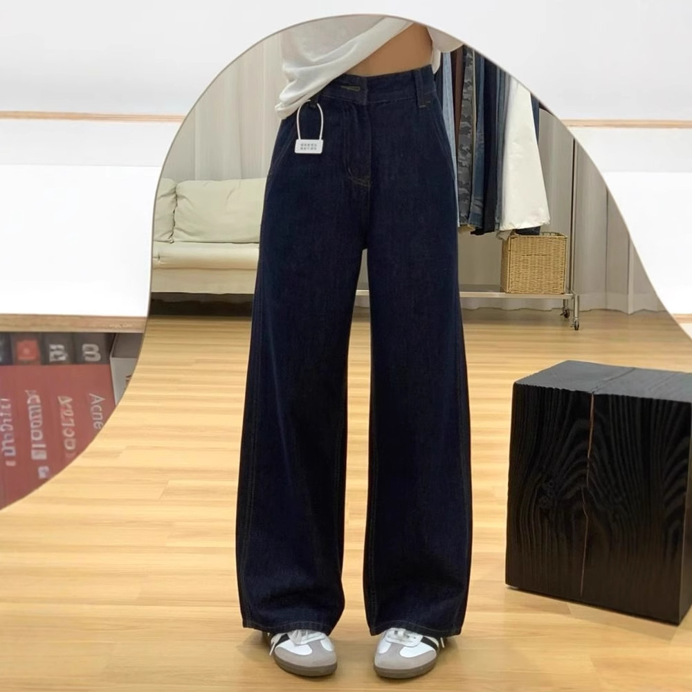 紺色の丹寧広脚ジーンズ女2024秋の新型レトロな腰がゆったりしている