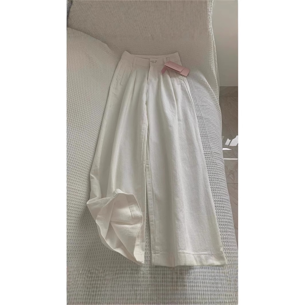 ワイド脚の白いジーンズの女性2024年春秋の新しいサイズのゆったりした腰が痩せているストレートのズボン