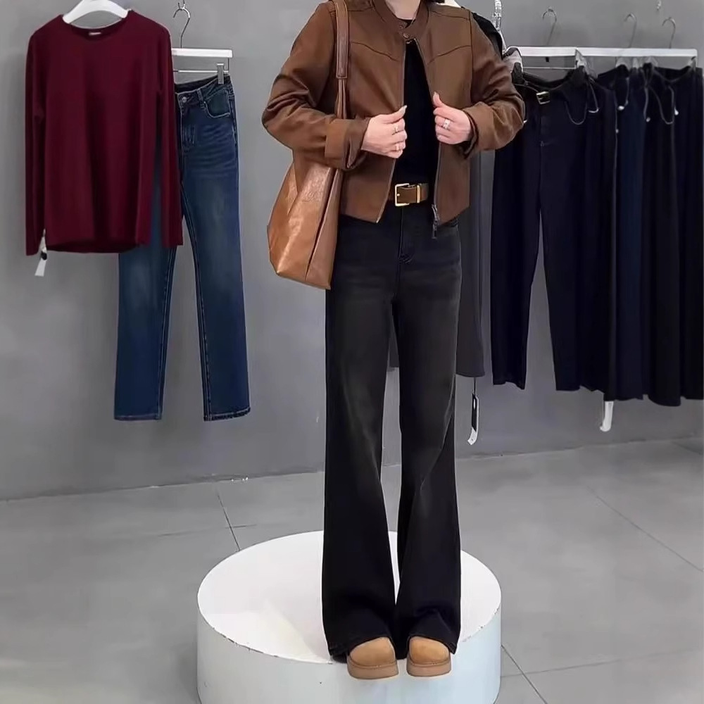 大きいサイズの高腰の弾力性のまっすぐな筒のマイクロラッパのジーパンの女性の2024秋の太っているmmは股を遮ってやせています。
