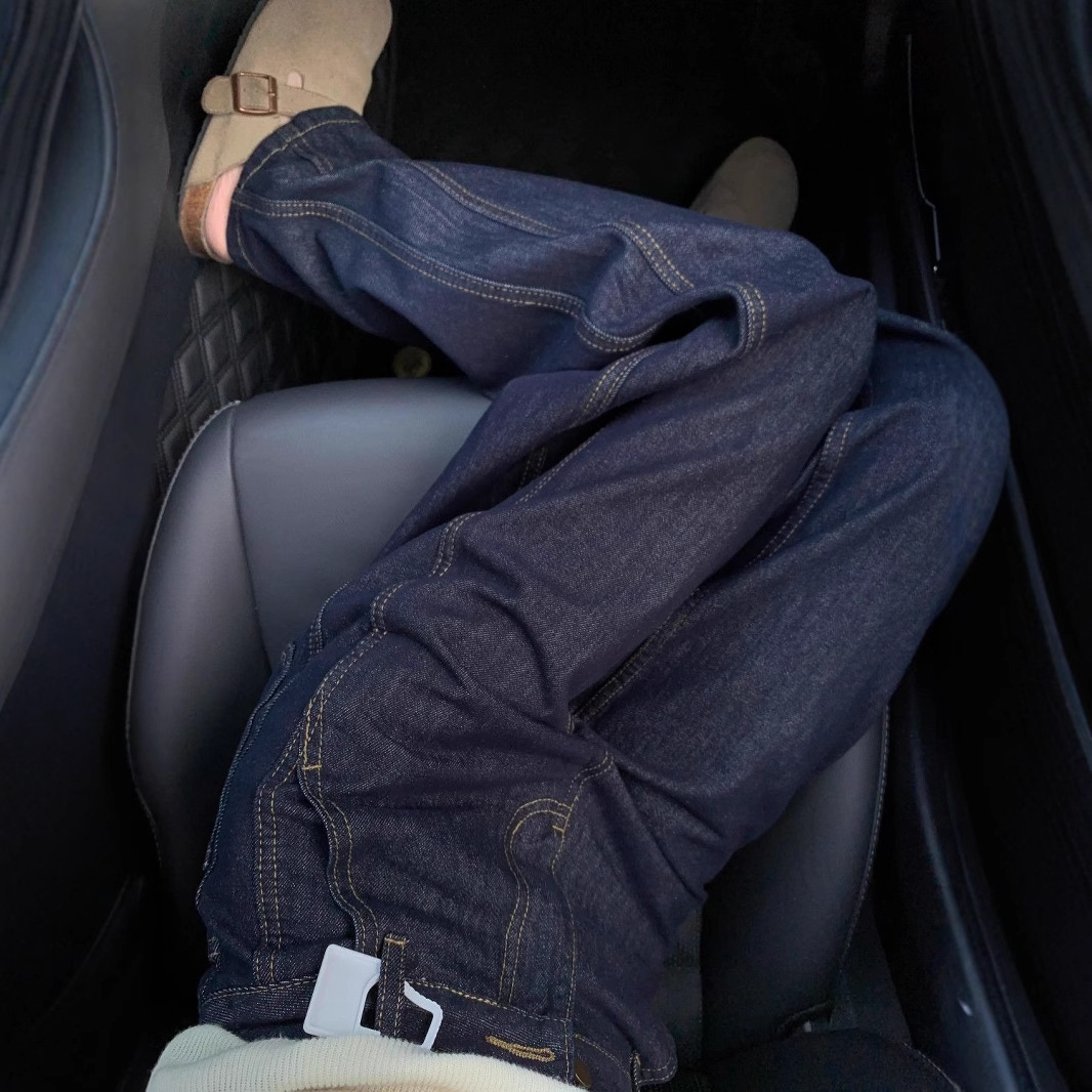 韓国版アメリカの紺色のジーパンの女性の2024年秋の新型のハイウエストはやせています。