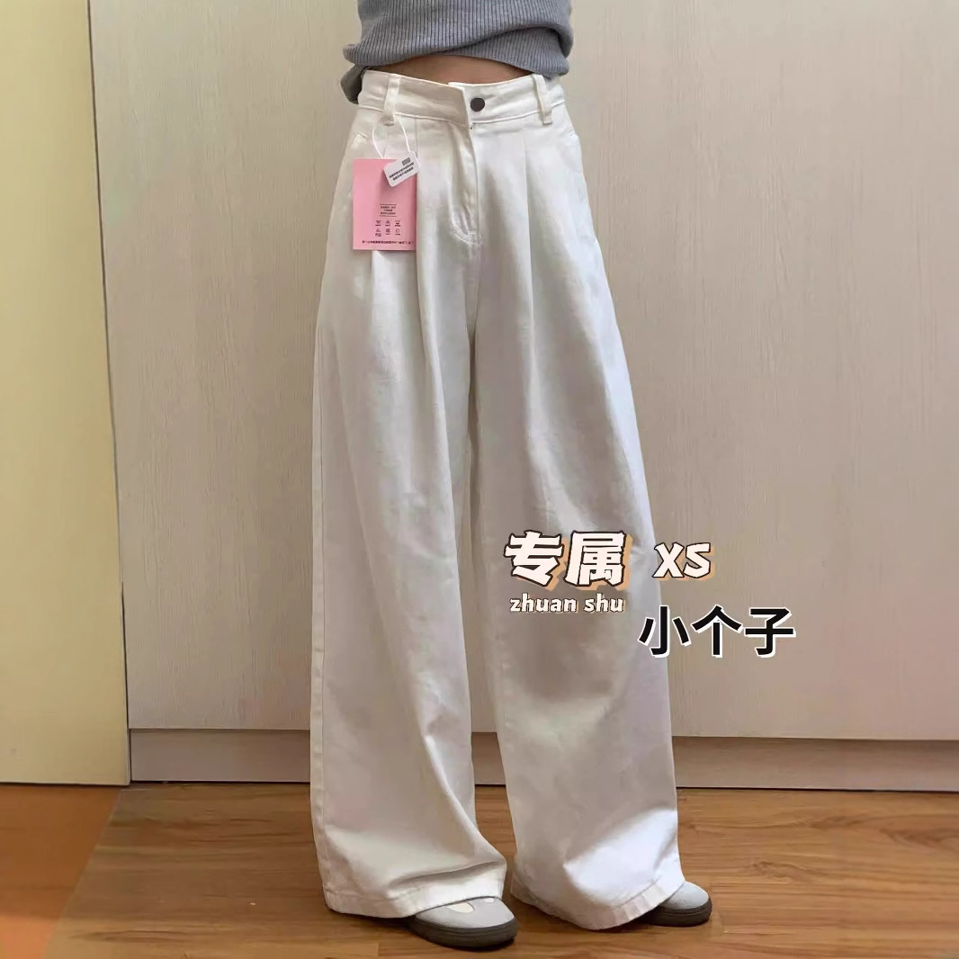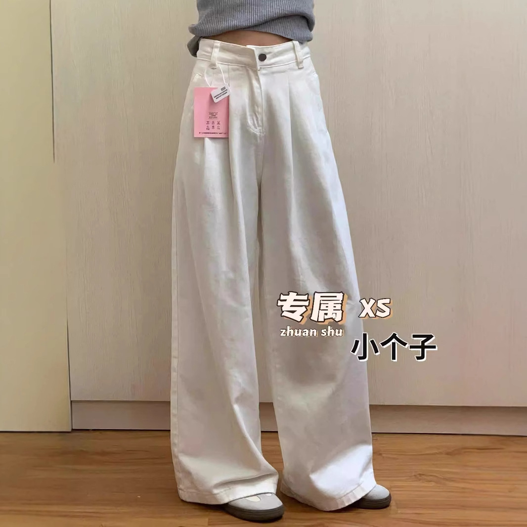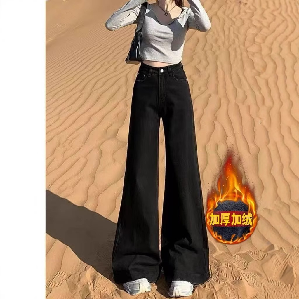 広脚の白いジーンズの女性は2024年秋冬の新しいベルベットの広脚ズボンが痩せているストレートでズボンが湿っている