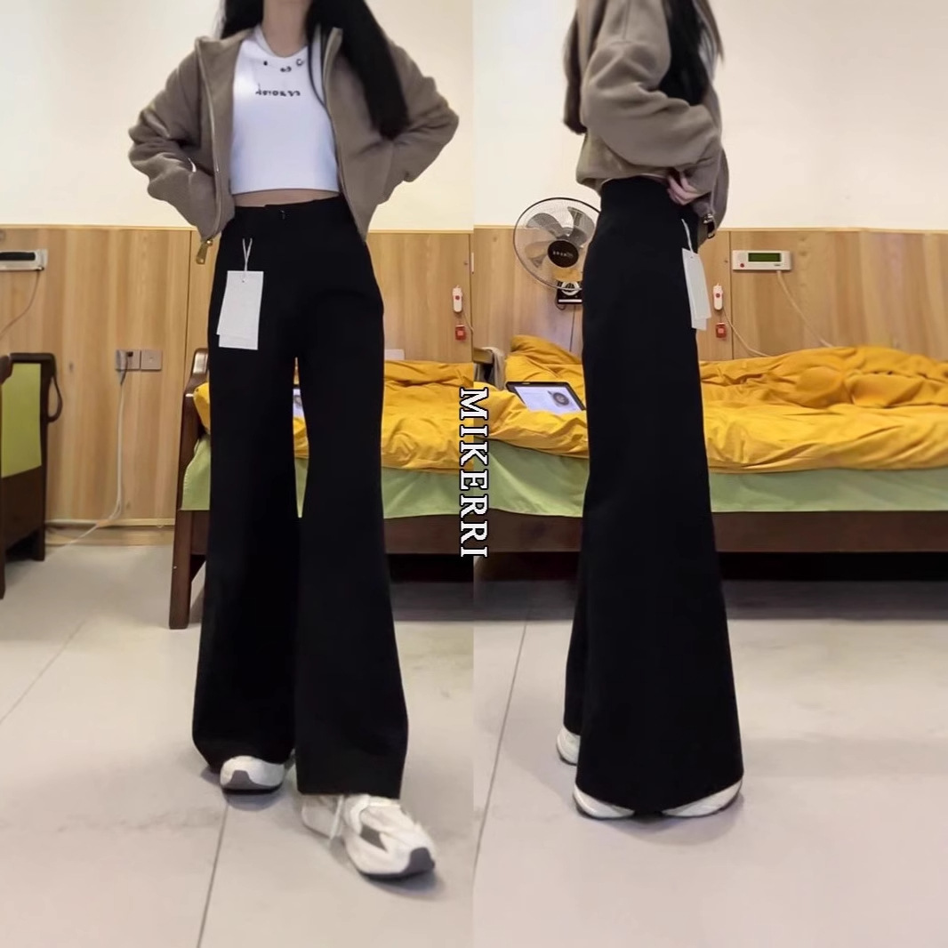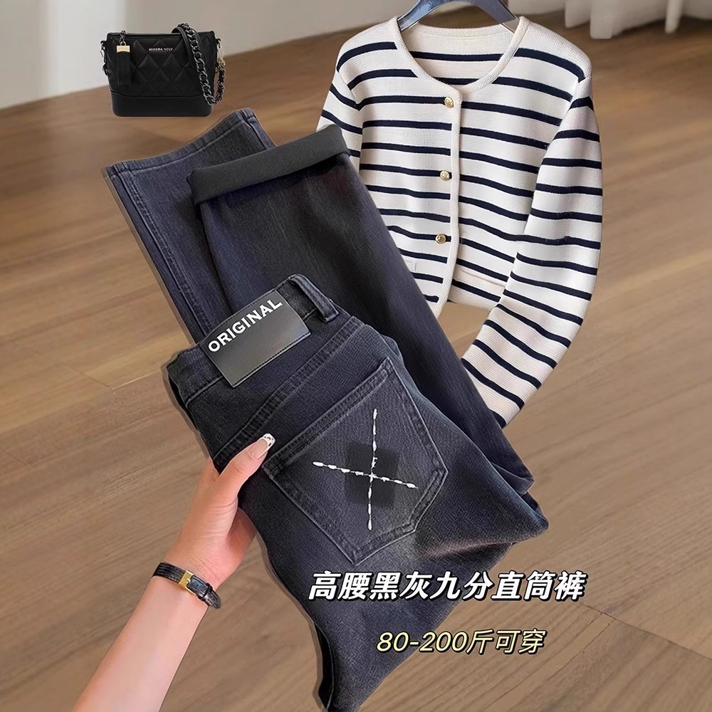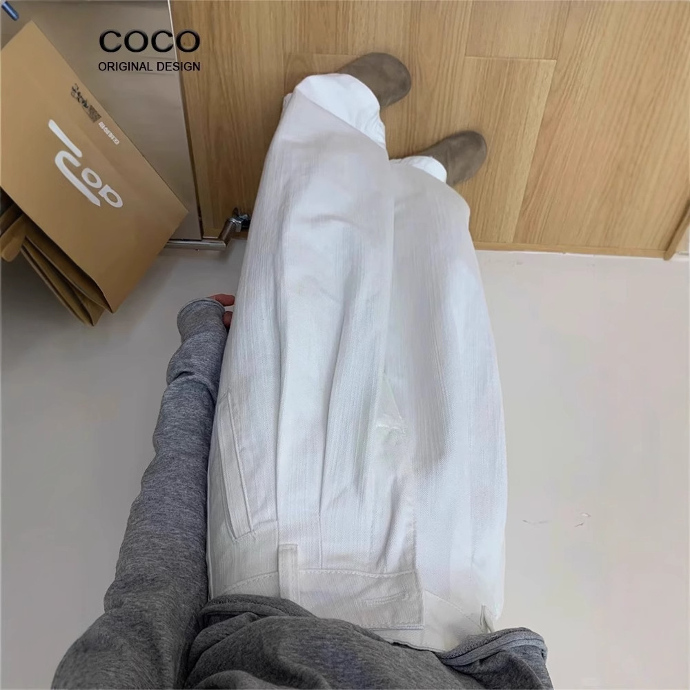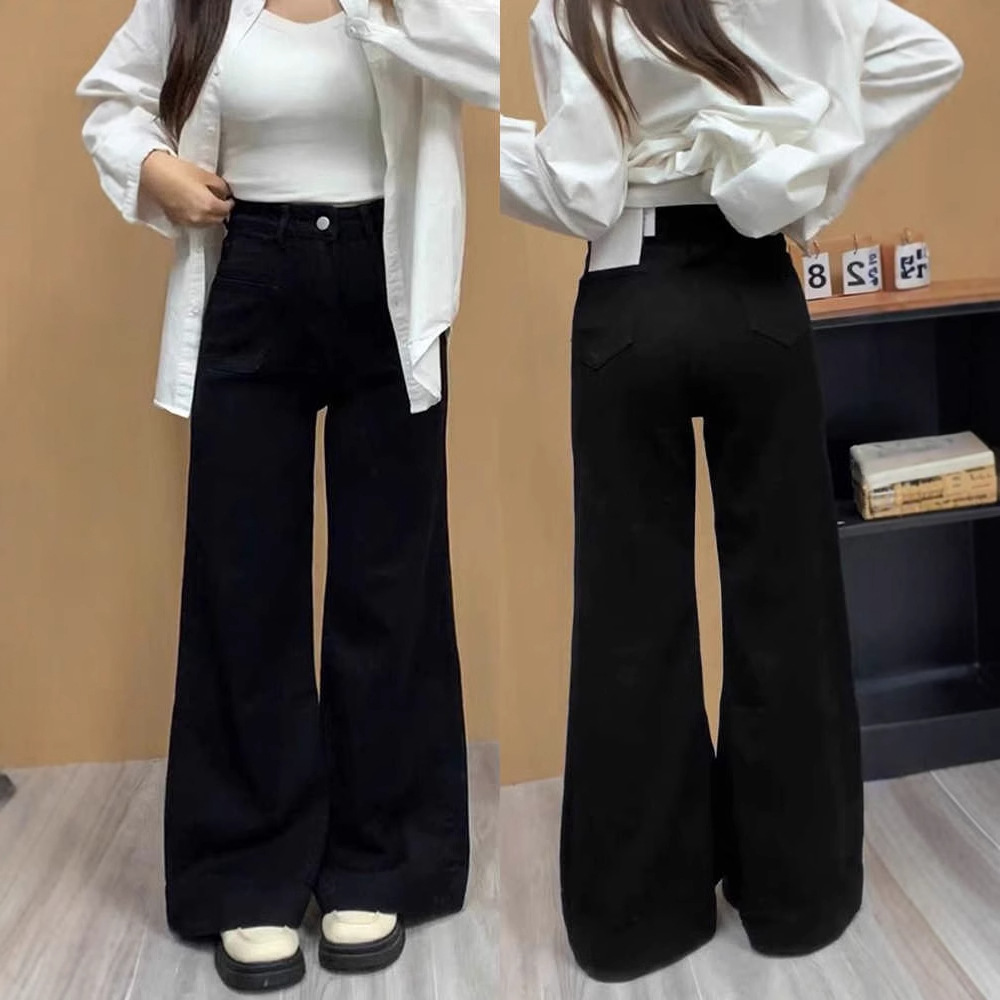 広脚の白いジーンズの女性は2024年秋冬の新しいベルベットの広脚ズボンが痩せているストレートでズボンが湿っている