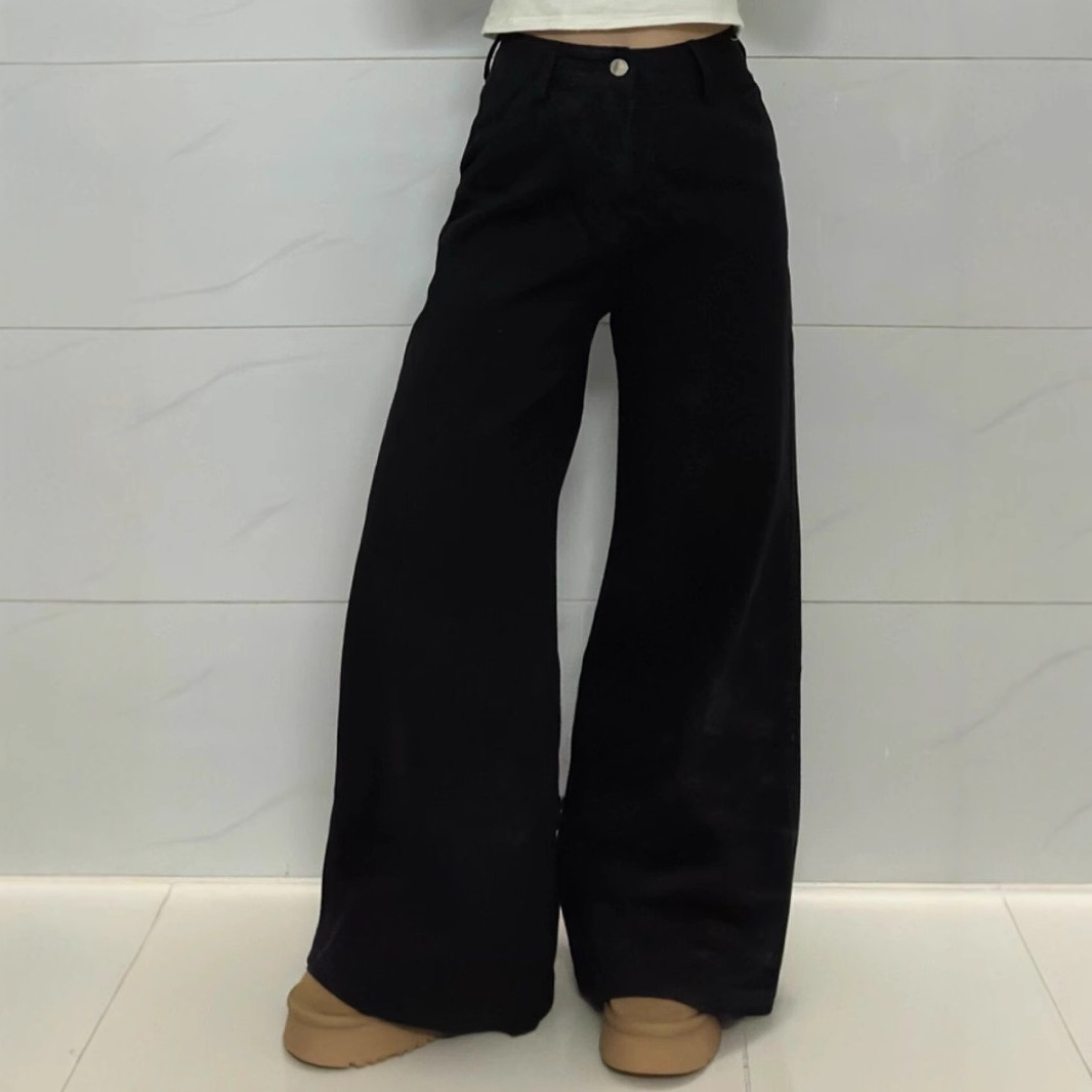 アメリカ式の黒いレトロな腰の広い足のまっすぐなズボンのファッションの百合はゆったりしていて、やせています。